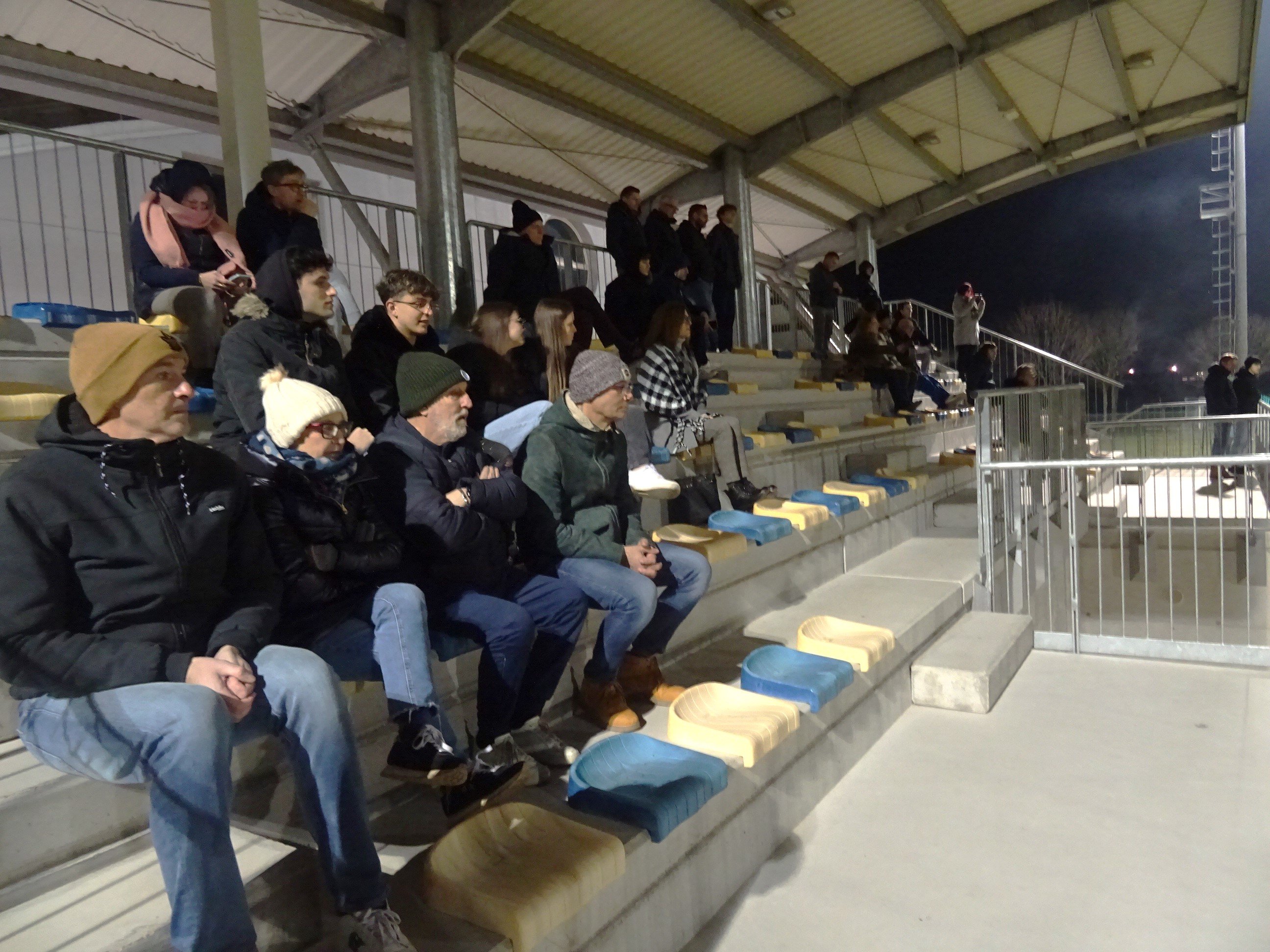 Es ist schon eine liebgewordene Tradition, dass die letzten Tage vor Weihnachten in Italien verbracht werden, um dort meist bei angenehmeren Temperaturen noch einige Spiele zu besuchen, ehe danach die Feiertage im Kreise der Liebsten verbracht werden. Wie bereits in letzten drei Jahren ist auch Andi M. an diesem Wochenende wieder mit von der Partie. Erstmals begleiten uns zu diesem Adventtrip Alex, der dankenswerter Weise für diese Fahrt das Steuer übernommen hat und Matthias. Kurz nach 08:00 Uhr komplettiere ich mit meinem Zustieg diese Fahrgemeinschaft und es es geht durch den Nebel die A2 in Richtung Süden, wo kurz vor Tarvis die Grenze nach Italien passiert werden sollte. Noch während der Durchquerung der karnischen Alpen ändert sich das Wetter und die Sonne kommt zum Vorschein. Als wir kurz vor Udine die Autobahn verlassen, sind die Temperaturen bereits im zweistelligen Bereich. Unser heutiges Ziel sollte der bei Pordenone befindliche Ort Fontanafredda sein. Dort befindet sich das Stadio Omero Tognon, die Heimstätte des ASD Communale Fontanafredda, der heute in der fünftklassigen Eccellenza der Region Friaul-Julisch Venetien auf ASD Lavarian Mortean Esperia trifft. Da wir vor dem Anpfiff um 14:30 Uhr noch etwas Zeit haben, machen wir in einem Supermarkt noch einige Besorgungen, ehe es schon zum Stadion geht. Das Stadio Omero Tognon wurde Mitte der 1970er Jahre errichtet und verfügt über architektonisch sehenswertes Flugdach über dem oberen Rang der Haupttribüne. Nach einem Umbau fiel die Stadionkapazität hier zwar auf 3.285 Plätze, dafür erfüllt das Stadion aber auch alle Auflagen für die drittklassige Serie C, sodass es unter anderem schon als Heimstätte für Triestina und aktuell für Dolomiti Bellunesi dient. Auch Spiele von italienischen Nachwuchs- und Frauennationalmannschaften finden hier statt. Rund 400 Besucher sind in dem von Schiedsrichter Meskovic geleiteten Spiel mit von der Partie. Fontanafreddas Saison ist bislang durchwachsen, konnte man erst einen Sieg einfahren. Da man bis dato auch neunmal Unentschieden spielte, konnte man immerhin einen Abstand zum Direktabstiegsplatz aufbauen. Die südlich von Udine beheimateten Gäste sind hingegen Tabellenzweiter und daher klarer Favorit in dieser Begegnung. Die ersten 45 Minuten verlaufen jedoch ereignislos. LME hat etwas mehr vom Spiel, aber kaum zwingende Chancen. So ist auf alle Fälle das Stadion der Star der ersten 45 Minuten, denn dieses schaut bei Sonnenuntergang mit den karnischen Alpen im Hintergrund noch etwas besser aus. Auch in den zweiten 45 Minuten bieten die beiden Mannschaften den Zuschauern keinen fußballerischen Leckerbissen, sodass ziemlich bald klar wird, dass es in Richtung torlosen Unentschieden gehen wird. LME gibt zwar das Tempo vor, ist aber vor dem Tor auch ziemlich harmlos. LME hadert danach mit dem Schicksal und die Spieler werden mit Fortdauer des Spiels nervöser. Es kommt zu einer Rudelbildung und somit geht man alles andere als fokussiert in die letzten Minuten. Aber auch Fontanafredda ist kurz vor dem Abpfiff etwas unkonzentriert und plötzlich läuft ein Spieler der Gäste alleine auf das Tor Fontanafreddas zu. Doch sein Abschluss geht flach an der linken Stange vorbei und nach dieser Aktion pfeift der Schiedsrichter diese Partie ab. Fontanafredda ist sicherlich mit diesem Punktgewinn zufrieden, während LME natürlich zwei verlorenen Punkte nachtrauert. Wir haben keine Zeit diesem torlosen Remis nachzutrauen, denn wir brechen gleich ins nahe Villotta auf, wo das zweite Spiel des Tages auf uns warten sollte. ASD Communale Fontanafredda - ASD Lavarian Mortean Esperia 0:0 -
