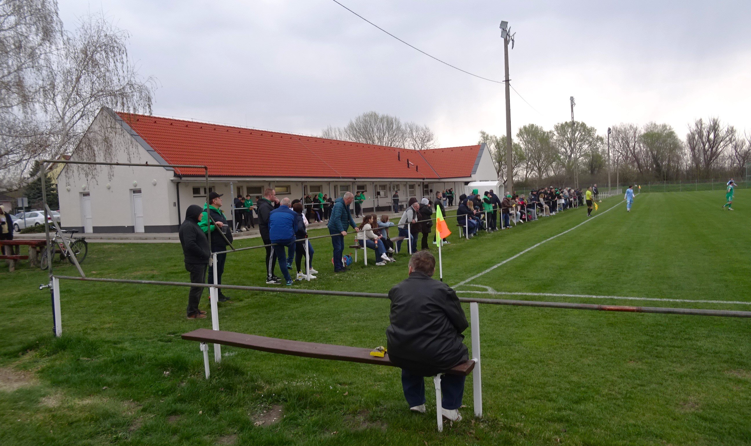 Unser Ziel für das heutige Nachmittagsspiel sollte Mezőörs sein, das sich im äußersten Osten des Komitats Győr-Moson-Sopron befindet. In Mezőörs liegt auch der letzte mir noch fehlende Platz in der höchsten Spielklasse in diesem Komitat. Das liegt nicht nur daran, dass ein Besuch am Mezőörs KSE Sporttelep noch nie wirklich geplant war, sondern auch daran, dass der Verein einen rasanten Aufstieg hingelegt hat und in wenigen Jahren der bedeutendste Verein in der Region Kisölföld geworden ist. Man spielt in der Saison auch ernsthaft um den Meistertitel in der obersten Komitatsliga mit und nach zahlreichen Cupduellen gegen höherklassige Vereine strebt man es hier wohl auch selbst an, in diese Sphären vorzustoßen. Der Sportplatz verfügt derzeit zwar noch nicht über die für die Drittklassigkeit geforderte überdachte Sitzplatztribüne, aber ansonsten hat man hier infrastrukturell schon seine Hausaufgaben gemacht. Es gibt sogar ein ziemlich gut ausgestattetes Sportplatzbuffet und auch einen großen Kabinentrakt sowie einen eigenen Eingang für Gästefans. In der Liga ist man mit 14 Siegen aus 15 Spielen bei nur einer Niederlage bloß Tabellenzweiter, weil die B-Mannschaft von Gyirmót in dieser Saison noch ohne Punkteverlust ist. Sprich, Mezőörs hat gegen Gyirmót in der Hinrunde die einzige Niederlage hinnehmen müssen. Zum Rückrundenauftakt kommt mit dem Koroncó KSSZE ein solider Mittelständler in den Osten des Komitats, wobei Koroncó vor einigen Jahren noch zu den Topmannschaften der Liga zählte, jedoch einen Aufstieg in die NB III nicht angepeilt hat. Rund 150 Besucher sorgen hier für eine gute Kulisse und die meisten der auf den Sportplatz gekommenen Zuschauer wollen heute einen weiteren Sieg der Heimelf bejubeln. Doch Koroncó erweist sich als schwer zu bespielender Gegner, sodass Mezőörs heute sichtlich gefordert ist. Das Spiel ist auf einem hohen Niveau und es gibt wenige Torchancen. Dass Mezőörs ein Topteam ist, wird spätestens in der 26.Minute klar, als Vári aus kurzer Distanz mit einer der ersten Chancen in diesem Spiel auch gleich den ersten Treffer erzielen kann. Im Laufe der ersten Spielhälfte ist Mezőörs sehr wohl die feldüberlegene Mannschaft, aber Koroncó lässt wenig bis gar nichts zu, sodass man keineswegs völlig chancenlos ist. Nach dem Seitenwechsel kommen die Gäste auch immer besser ins Spiel und fordern Mezőörs auf heimischer Anlage zu 100%. Doch ein Big Point in der Form des Ausgleichs will Koroncó nicht gelingen, weil auch Mezőörs in der Defensive seine Aufgaben macht. Die Entscheidung fällt dann in der 82.Minute, denn in dieser kommt ein Verteidiger der Gäste im Strafraum eindeutig zu spät und verfehlt mit einer Grätsche den Ball und trifft den Stürmer am Bein, der durch diesen Kontakt auch zu Boden geht. Schiedsrichter Fuhrmann steht unmittelbar daneben und zeigt sofort auf den Punkt. Végh verwandelt den Strafstoß sicher. Im Jubel wird anfangs die Anzeigetafel nicht auf 2:0 gestellt und als sich der Vereinsoffizielle danach offenbar verdrückt und diese ausschaltet anstatt auf 2:0 zu stellen, wird diese auch nicht mehr eingeschaltet. Wenige Minuten später ist dann auch Schluss hier. Mezőörs gewinnt ein hochklassiges Spiel gegen Koroncó mit 2:0, womit der Mezőörs KSE weiterhin alle Trümpfe in der Hand hat, die I. osztály im Komitat Győr-Moson-Sopron zu gewinnen. Für mich ist mit dem Mezőörs KSE Sporttelep diese Liga nun komplettiert, womit neben dem Komitat Vas nun auch eine zweite der höchsten Ligen eines ungarischen Komitates komplettiert ist. Aber es wird mit dem Komitat Győr-Moson-Sopron noch ein oftmaliges Wiedersehen geben, zumal in den drei zweiten Komitatsligen sicher über ein Drittel der dortigen Sportplätze noch nicht besucht wurde. Mezőörs KSE - Koroncó KSSZE 2:0 (1:0) -