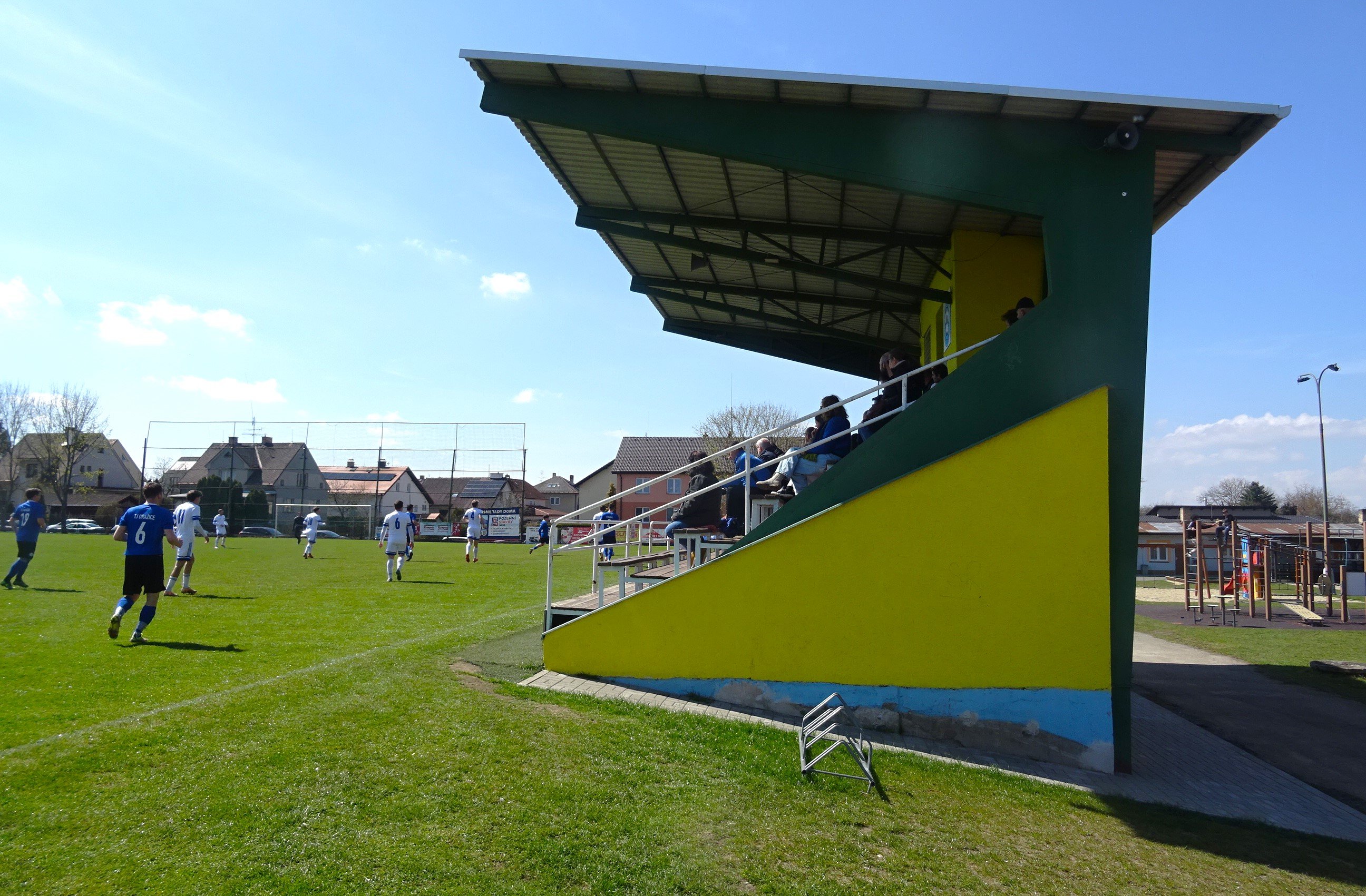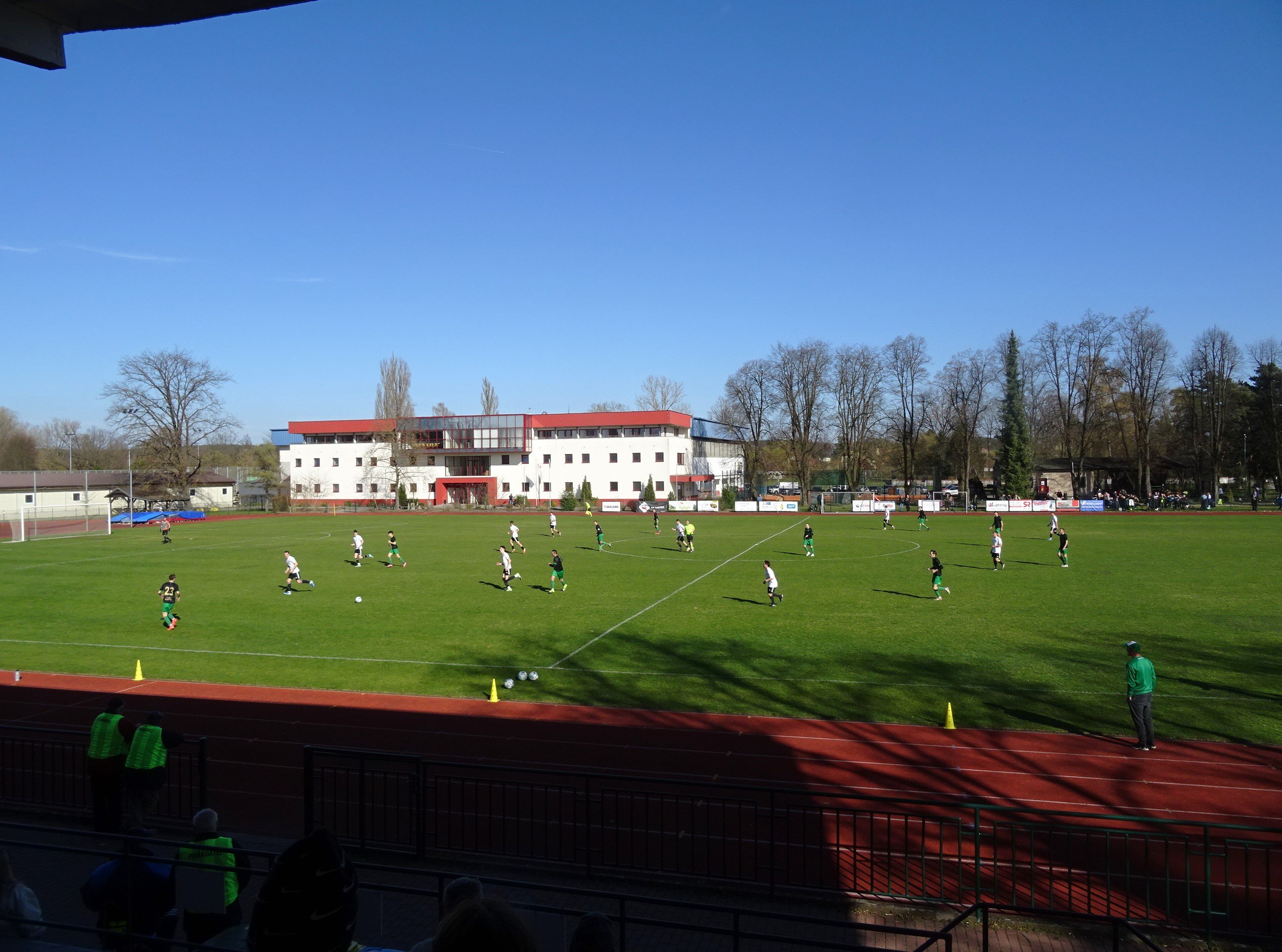 "Erbarmungslos" läutete an diesem Samstag der Wecker um 05:30 Uhr, doch selbst wenn man die größten Teile der Vorbereitung für die heutige Fahrt nach Tschechien bereits am Vorabend erledigte, galt es insbesondere die Kids noch reisefertig zu machen, um kurz nach 06:30 Uhr das "metallene Gefährt" starten zu können, sodass wir rechtzeitig zum Treffpunkt mit Andi M. gelangen, der uns heute in den Jihočeský kraj begleiten sollte. Unser erstes Ziel sollte Tábor sein, wo es neben dem Zweitligisten Táborsko mit Meteor Tábor noch einen weiteren Verein gibt, der immerhin fünftklassig und somit in der höchsten Liga dieser Region spielt. Mit geringen Erwartungen erreichen wir den im Nordosten der Stadt gelegenen Sportplatz. Allerdings sind wir positiv überrascht, dass wir beim (oder eigentlich vor dem) Eingang quasi von einem Grill "begrüßt" werden. Aber auch am Sportplatz sind wir entzückt, gibt es hier doch mittlerweile eine kleine dreireihige Tribüne, die zwar unüberdacht ist, aber immerhin Sitzschalen in der Vereinsfarben Rot und Gelb aufweist. Das Zuschaueraufkommen ist in der von Schiedsrichter Šťastný geleiteten Partie mit 124 Besuchern auch mehr als ordentlich, wobei man hier auf anmerken muss, dass auch zahlreiche Zuschauer aus Dolní Dvořiště einmal quer durch den Jihočeský kraj von der oberösterreichischen Grenze hier in den Norden der Region hergekommen sind. Das Spiel ist in der ersten 45 Minuten ohne viele Höhepunkte. Die Gastgeber sind zwar laut Tabellenstand Favorit, aber Dolní Dvořiště hat sich aus der Abstiegszone gearbeitet und ist mittlerweile Elfter. Einen spielerischen Unterschied zu FK Meteor Tábor, der seinerseits Platz sieben in der Tabelle einnimmt, war in der ersten Spielhälfte nicht auszumachen. Nach der Pause begeben wir uns zum Grillstand, wo um wohlfeile Kc 60,- in eine Klobása investiert wird. Wir verzehren diese gleich unter der Laube beim Eingang, sodass wir perfekte Sicht auf den ersten Treffer dieses Spiels haben. Weinzettel bringt den FK Meteor in der 47.Minute in Führung. Da man zu dritt von einer Klobása nicht satt wird, schlagen wir noch ein weiteres Mal am Grillstand zu. Dieses Mal genehmigen wir uns allerdings die scharfe Variante der Klobása. Wohl gelabt begeben wir uns wieder in Richtung Mitte auf den bloß von einer Seite zugänglichen Stadtsportplatz, sodass wir wieder einen guten Blick auf das nächste Tor haben, denn Tesař gelingt in der 63.Minute der nicht ganz unverdiente Ausgleich. Während man bei den Gästen schon damit rechnet, einen Punkt mit in den Süden nehmen zu können, erhöht Meteor in der Schlussphase das Tempo. In der 85.Minute nützt Hera eine Unachtsamkeit in der Defensive der Gäste und kann alleine aufs Tor laufen. Er lässt sich nicht zweimal bitten und erzielt die erneute Führung für den FK Meteor. Doch es gibt in der Schlussminute noch ein Highlight. Als der Gästetormann einen Ball von der Strafraumgrenze ausschießt, geht dieser direkt zu Lachout, der sich wenige Meter vor dem Anstoßpunkt befindet und den Ball mittels Drop-Kick aus rund 50 Meter ins Tor schießen kann. Der Platzsprecher meint, dass der Treffer kurios war; wir meinen hingegen, dass es einfach ein Traumtor war. Mit 3:1 gewinnt der FK Meteor Tábor schließlich diese Partie der 5.Liga im Jihočeský kraj und nachdem sich beide Mannschaften von ihren Fans verabschieden und mit ihnen auch abklatschen, geht es für uns, nach einem kurzen Einkaufsstopp, schon wieder weiter zum nächsten Spiel, das abermals eines der 5.Liga im Jihočeský kraj sein sollte. FK Meteor Tábor - FK Dolní Dvořiště 3:1 (0:0) -
