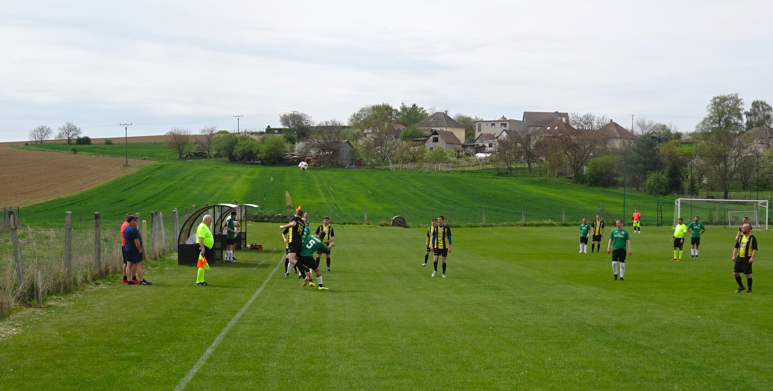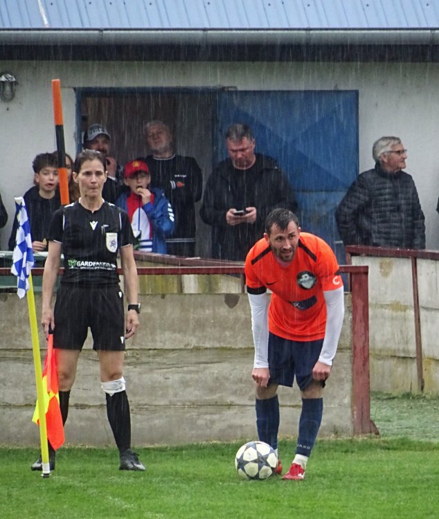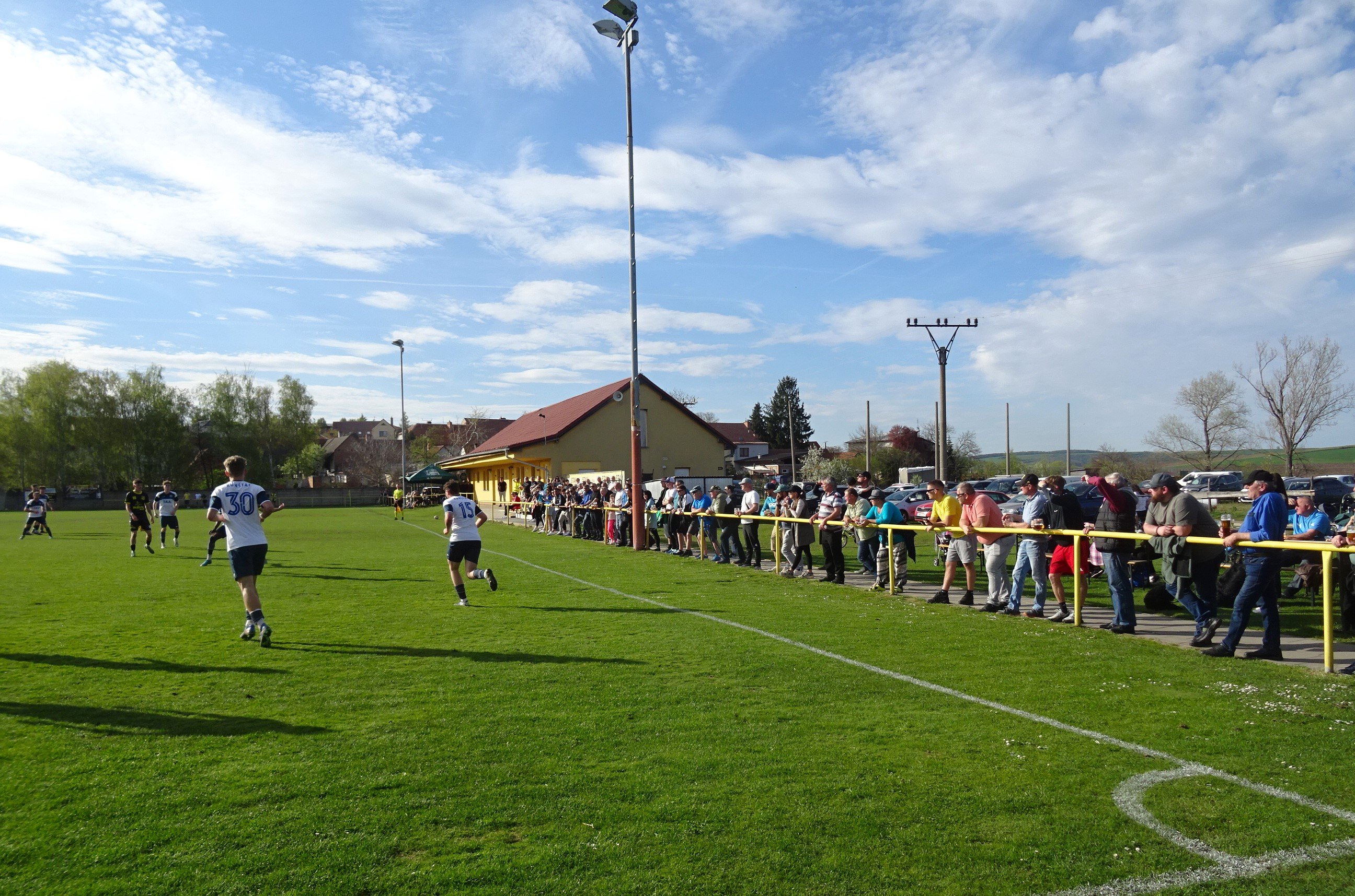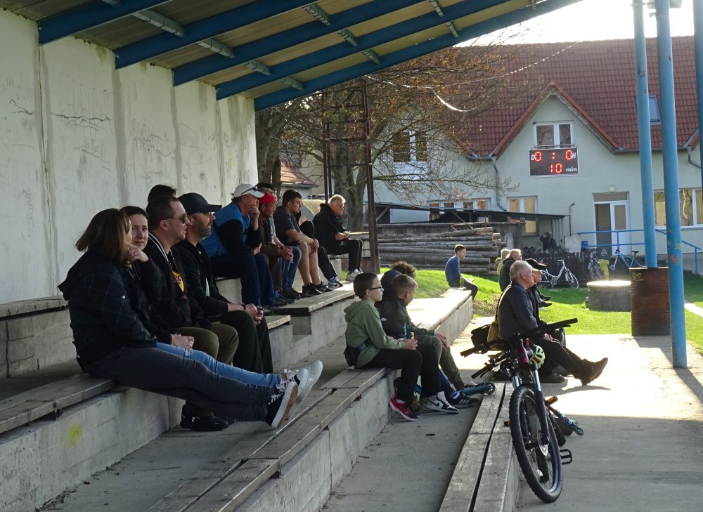 Unsere Fahrt sollte uns über Brünn in den ebenfalls zum Jihomoravský kraj gehörenden Okres Vyškov bringen, wo um 13:00 Uhr der TJ Heršpice in einem Spiel der 8.Liga des Bezirks auf den TJ Letonice treffen sollte. Nun schreibt man ja nicht allzu oft im Okres Vyškov an, aber die heutige Begegnung hatte einige Kreisschlüsse zu Folge, hatte man TJ Heršpice im November 2024 auswärts gesehen und TJ Letonice bereits im Juni 2017 einen Besuch abgestattet. Für Heršpice sieht es als Tabellenführer der Liga mit einem Aufstieg in die kreisweiten Ligen ganz gut aus und da darf der Nachbar aus Letonice, der es etwas mehr als zehn Kilometer hierher hatte, zu keinem Stolperstein werden. Doch Letonice ist gut in die Frühjahrssaison gestartet, sodass man bei in Heršpice den Gegner sicher nicht unterschätzen wird. Der Platz in Heršpice ist jetzt zwar kein San Siro, hat aber auf einer Längsseite eine natürliche Hangtribüne. Auf dieser Seite befindet um den Mittelkreis auch eine kleine, zweireihige Tribüne. Diese ist zwar unüberdacht, erfreut sich bei der Vielzahl der rund 100 Besucher einer großen Beliebtheit. Der Rest nutzt die Sitzbänke samt Biertische hinter dem Tor beim Klubhaus. Dort befinden sich auch die Schank und der Grill. Der Rasen gleicht hier zwar mehr einer Gänseblümchenwiese als einem Fußballfeld, aber ein Tabellenführer sollte sich davon nicht aus dem Konzept bringen lassen, schon gar nicht, wenn es der Heimplatz ist. Die Gäste vom TJ Letonice kommen mit diesen Bedingungen jedenfalls ganz gut klar und so geht es in einer ausgeglichen Partie torlos zurück in die Kabine. Zur Halbzeit gehen wir zum Grill, wo Klobása und Cigáro aus dem Räucherofen zum Einheitspreis von Kc 80,- angeboten werden. Wir entscheiden uns diesmal für die Cigáro, zumal wir bis dato an diesem immer eine Klobása bei den Spielen hatten. Bei angenehmen Frühlingstemperaturen kommt der TJ Heršpice aber auch nach dem Seitenwechsel nicht richtig auf Touren. So begeben wir uns in der Schlussviertelstunde auf die Fotorunde und rechnen auch damit, dass dieses Spiel 0:0 enden wird. Aber in der 79.Minute ist Heršpices Zatloukal im Strafraum am schnellsten und bringt den Ball aus kurzer Distanz im Tor Letonices unter. Das sollte der Siegtreffer in dieser Partie sein und da man nach 20.Runden noch immer Tabellenführer ist, scheinen Meistertitel und Aufstieg Heršpices nun tatsächlich immer mehr in Griffweite zu gelangen. Nach dem Schlusspfiff von Schiedsrichter Machala verlieren wir keine Zeit und begeben uns in den Minimarkt Heršpices, wo wir einige Kaltgetränke ergattern, ehe es etwas weiter südwärts zu unserem letzten Spiel des Tages gehen sollte. TJ Heršpice - TJ Letonice 1:0 (0:0) -