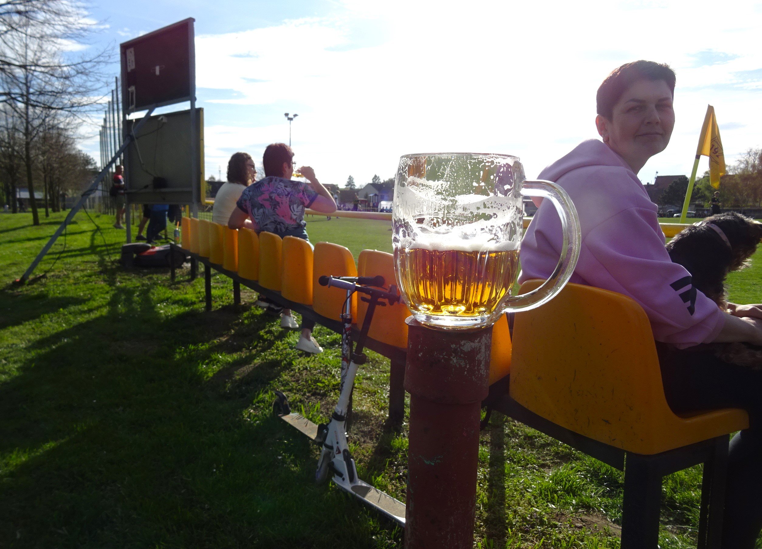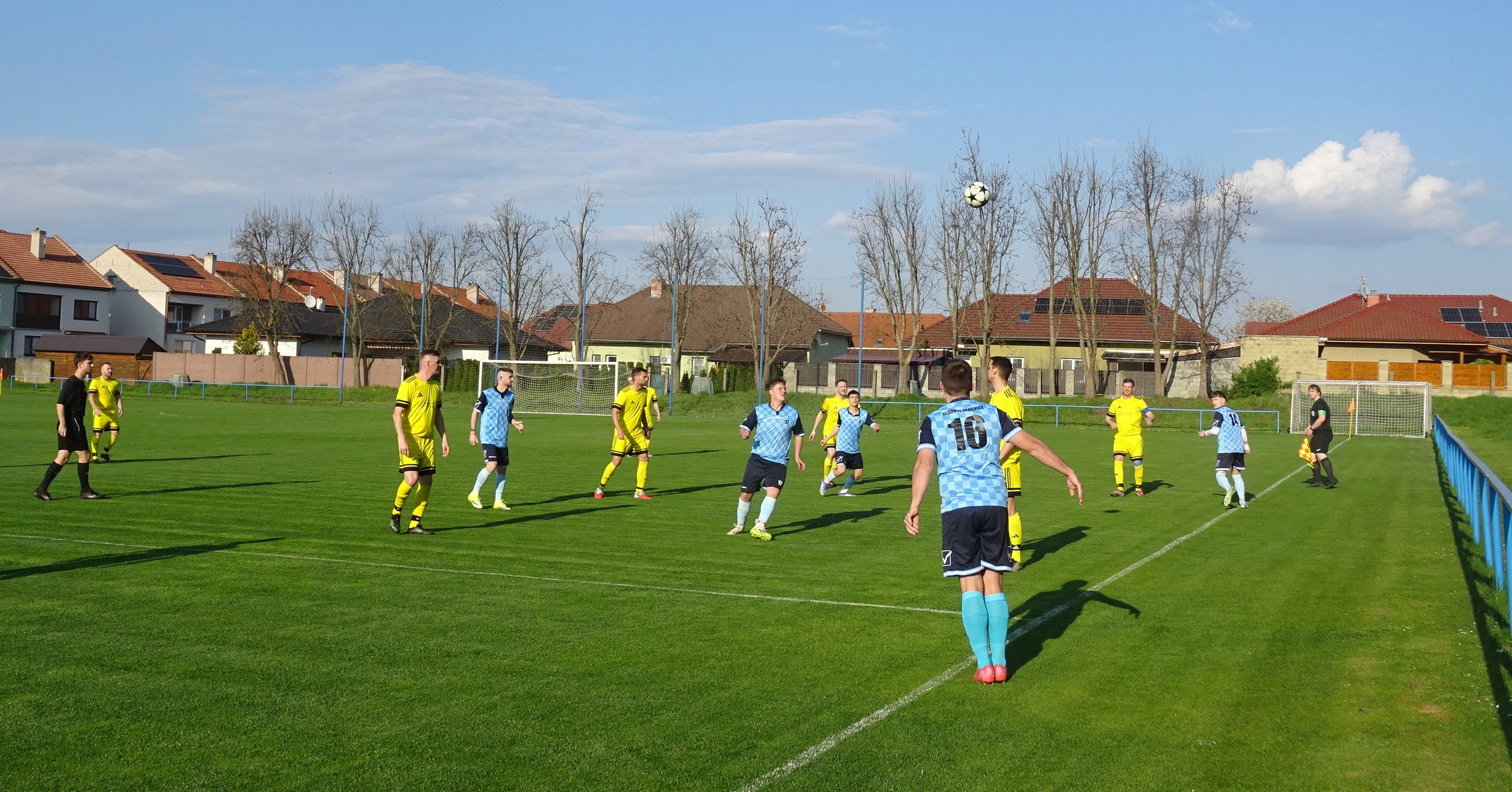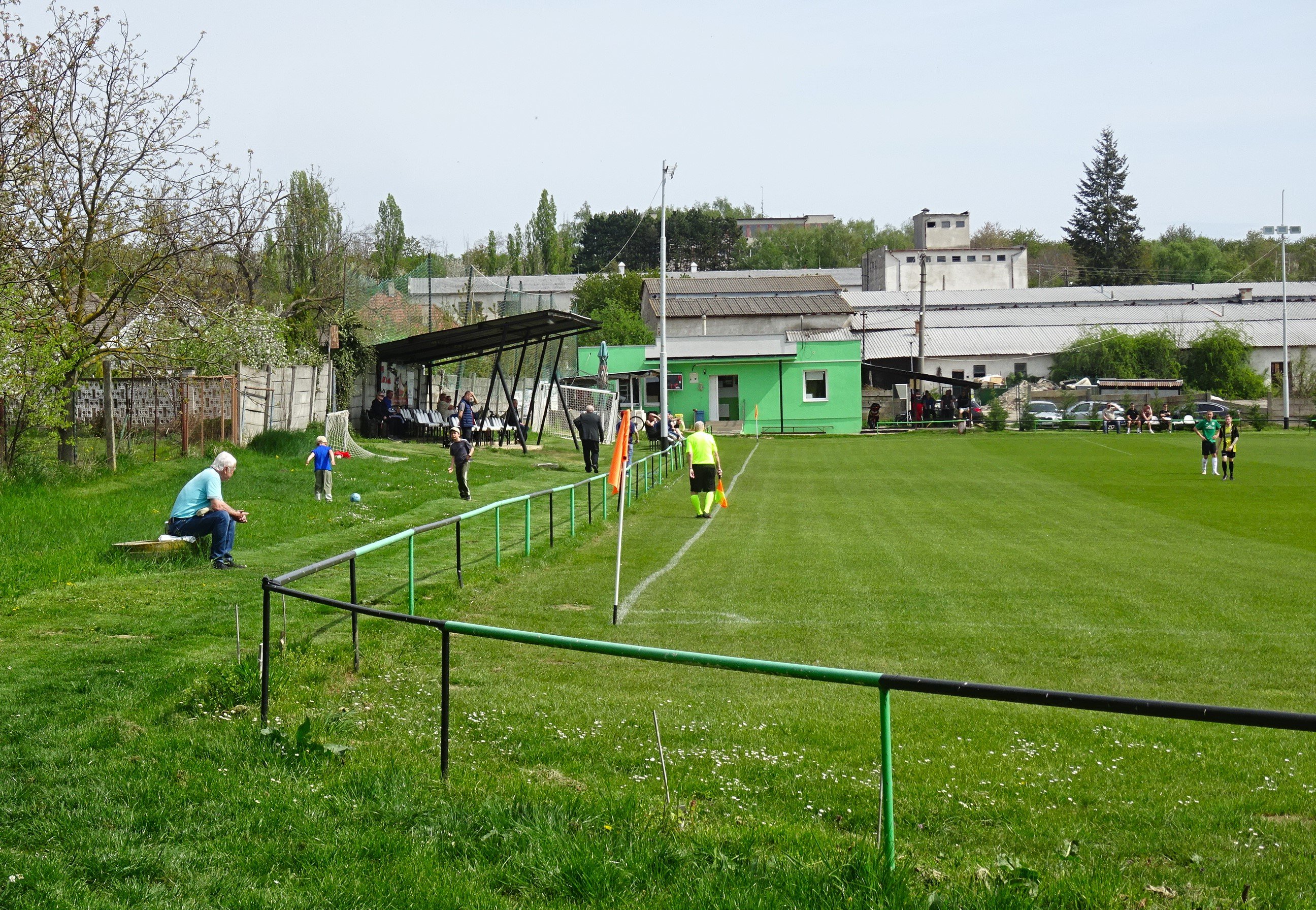 Unsere Fahrt sollte uns über Brünn in den ebenfalls zum Jihomoravský kraj gehörenden Okres Vyškov bringen, wo um 13:00 Uhr der TJ Heršpice in einem Spiel der 8.Liga des Bezirks auf den TJ Letonice treffen sollte. Nun schreibt man ja nicht allzu oft im Okres Vyškov an, aber die heutige Begegnung hatte einige Kreisschlüsse zu Folge, hatte man TJ Heršpice im November 2024 auswärts gesehen und TJ Letonice bereits im Juni 2017 einen Besuch abgestattet. Für Heršpice sieht es als Tabellenführer der Liga mit einem Aufstieg in die kreisweiten Ligen ganz gut aus und da darf der Nachbar aus Letonice, der es etwas mehr als zehn Kilometer hierher hatte, zu keinem Stolperstein werden. Doch Letonice ist gut in die Frühjahrssaison gestartet, sodass man bei in Heršpice den Gegner sicher nicht unterschätzen wird. Der Platz in Heršpice ist jetzt zwar kein San Siro, hat aber auf einer Längsseite eine natürliche Hangtribüne. Auf dieser Seite befindet um den Mittelkreis auch eine kleine, zweireihige Tribüne. Diese ist zwar unüberdacht, erfreut sich bei der Vielzahl der rund 100 Besucher einer großen Beliebtheit. Der Rest nutzt die Sitzbänke samt Biertische hinter dem Tor beim Klubhaus. Dort befinden sich auch die Schank und der Grill. Der Rasen gleicht hier zwar mehr einer Gänseblümchenwiese als einem Fußballfeld, aber ein Tabellenführer sollte sich davon nicht aus dem Konzept bringen lassen, schon gar nicht, wenn es der Heimplatz ist. Die Gäste vom TJ Letonice kommen mit diesen Bedingungen jedenfalls ganz gut klar und so geht es in einer ausgeglichen Partie torlos zurück in die Kabine. Zur Halbzeit gehen wir zum Grill, wo Klobása und Cigáro aus dem Räucherofen zum Einheitspreis von Kc 80,- angeboten werden. Wir entscheiden uns diesmal für die Cigáro, zumal wir bis dato an diesem immer eine Klobása bei den Spielen hatten. Bei angenehmen Frühlingstemperaturen kommt der TJ Heršpice aber auch nach dem Seitenwechsel nicht richtig auf Touren. So begeben wir uns in der Schlussviertelstunde auf die Fotorunde und rechnen auch damit, dass dieses Spiel 0:0 enden wird. Aber in der 79.Minute ist Heršpices Zatloukal im Strafraum am schnellsten und bringt den Ball aus kurzer Distanz im Tor Letonices unter. Das sollte der Siegtreffer in dieser Partie sein und da man nach 20.Runden noch immer Tabellenführer ist, scheinen Meistertitel und Aufstieg Heršpices nun tatsächlich immer mehr in Griffweite zu gelangen. Nach dem Schlusspfiff von Schiedsrichter Machala verlieren wir keine Zeit und begeben uns in den Minimarkt Heršpices, wo wir einige Kaltgetränke ergattern, ehe es etwas weiter südwärts zu unserem letzten Spiel des Tages gehen sollte. TJ Heršpice - TJ Letonice 1:0 (0:0) -