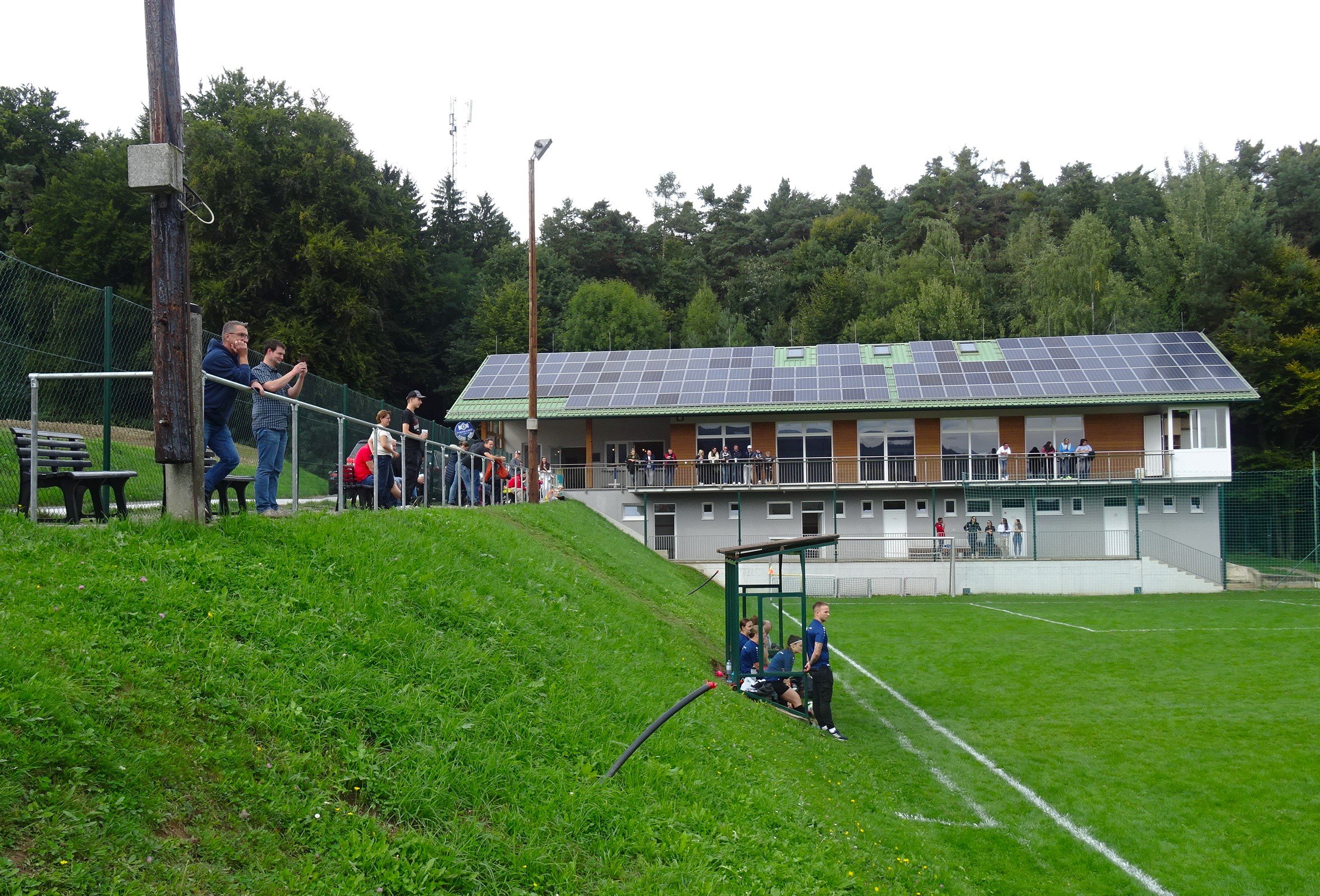 Dass am Freitag das für Samstag um 13.00 Uhr im nördlich von Brünn befindlichen Soběšice angesetzte Spiel auf einen Kunstrasenplatz in Brünn um 15.00 Uhr verlegt wurde, war nicht in unserem Interesse, denn so war das geplante Drittligaspiel in Blansko ebenfalls nicht mehr kombinierbar. Unsere Fahrt in den Jihomoravský kraj stand daher auf der Kippe, aber es konnte umdisponiert werden und so wurden drei völlig andere Spiele angefahren, obgleich am Treffpunkt nichts geändert werden musste. Kurz nach 08:30 Uhr ging es ab Kettlasbrunn zusammen mit Andi M. in Richtung Norden, wo das im Okres Břeclav gelegene Šitbořice unser erstes Ziel gewesen ist. Um 10.00 Uhr war Anpfiff der Begegnung des TJ Sokol Šitbořice gegen den TJ Sokol Strachotín. Wem diese Namen nicht wirklich ein Begriff sind, dem sei gesagt, dass wir uns hier in der 9.Liga und somit der vorletzten Spielklasse in diesem Bezirk befinden. Dass Zuschauerinteresse ist mit 105 Besuchern an diesem Vormittag auch ausgesprochen gut und es gefällt es auch, dass der Räucherofen bereits angeheizt wird, sodass wir Šitbořice wohl nicht mit einem leeren Magen verlassen werden. Der auf bloß einer Seite für Besucher zugängliche Sportplatz weiß ebenfalls zu überzeugen, hat der doch eine Sitzbankreihe auf dem hinter dem Klubhaus befindlichen Hang. Da ein Kabinentrakt die Sicht vom Hang aus zu sehr einschränken wurde, müssen sich die Spieler übrigens in der nahen Schule umziehen. Da sich Šitbořice in der Spitzengruppe der Liga befindet und Strachotín im Mittelfeld, sind die Gastgeber heute in der Favoritenrolle. Doch wider die Papierform gehen die in den an Atlético Madrid erinnernden Trikots spielenden Gäste bereits in der siebenten Minute durch Feno in Führung. Doch Šitbořice kommt nach dem Gegentreffer besser ins Spiel und dreht noch im Laufe der ersten Spielhälfte durch Tore von Nevídal (25. Minute) und Kaňa (35.Minute) diese Begegnung. Aber Strachotíns Ausgleich sollte noch vor der Pause fallen, denn nach einem Foul in Strafraum gibt es Elfmeter für die Gäste und diesen versenkt Langer in der 39.Minute sicher. In der Pause genehmigen wir uns eine Cigáro vom Grill für sehr faire Kc 80,-. Wir verfolgen danach die ausgeglichene Partie nicht mehr vom Hang aus, von dem aus wir in den ersten 45 Minuten zahlreiche gute Motive vorfanden, sondern bleiben gleich bei den Stehplätzen entlang der Längsseite. Von dort aus sehen wir, dass Feno mit seinem zweiten Treffer an diesem Vormittag ein zweites Mal für die Führung der Gäste sorgt. In den rund 20 Minuten, die Šitbořice nun noch bleiben, um die drohende Niederlage abzuwenden, gibt es rollende Angriffe auf das Tor Strachotín. Die Gäste müssen nun eine Abwehrschlacht liefern, aber aus dieser geht man aber erfolgreich hervor, denn als Schiedsrichter Zaviačič das Spiel nach einer fünfminütigen Nachspielzeit abpfeift, ist der doch überraschende Sieg der Gäste amtlich. Wir ziehen danach von Šitbořice weiter in Richtung Osten, wo wir der 9.Liga zwar treu bleiben sollten, jedoch vom Okres Břeclav in den Okres Hodonín wechseln sollten. TJ Sokol Šitbořice - TJ Sokol Strachotín 2:3 (2:2) -