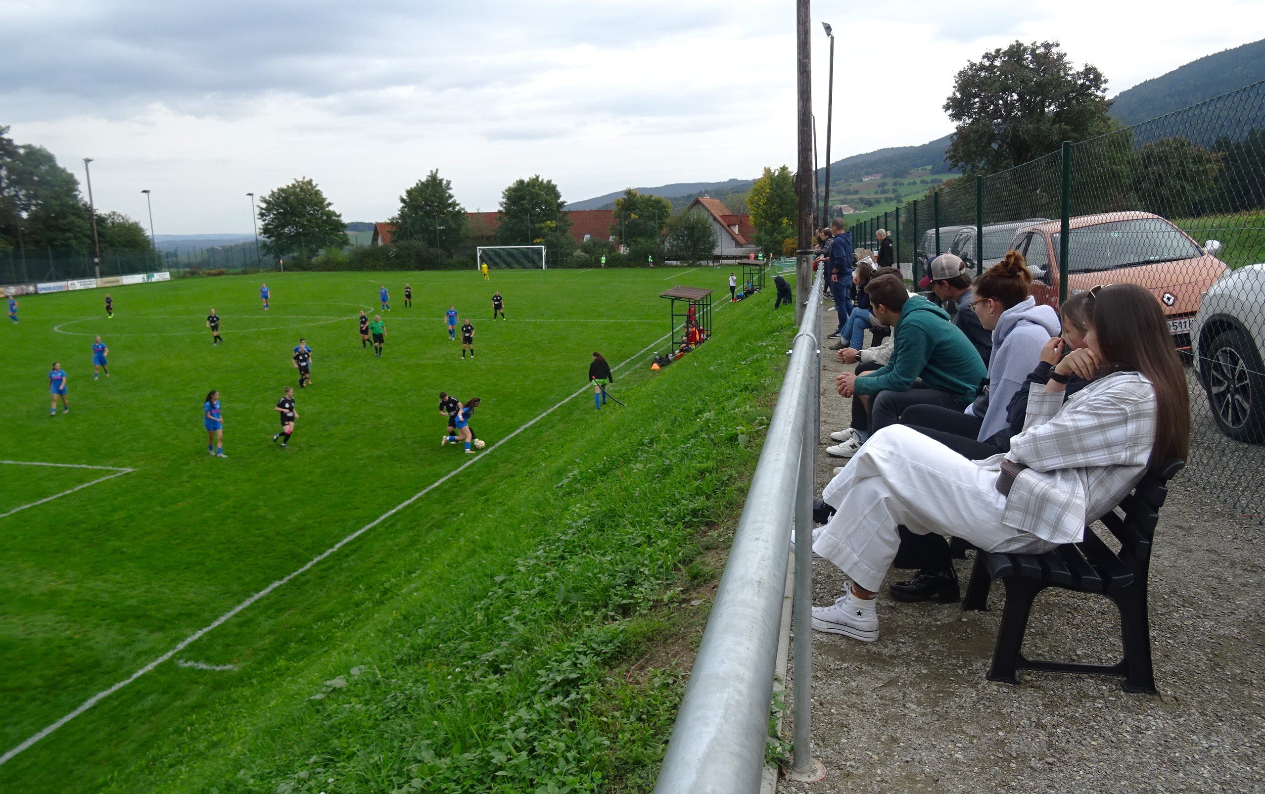 Schon mehr als seit einem Jahrzehnt werden in beim Pöllau befindlichen Rabenwald keine Spiele mehr im Herrenfußball ausgetragen. Zum Glück gibt es eine Frauenmannschaft, die hier im Meisterschaftsbetrieb des StFV dem runden Leder nachjagt. Doch seit einigen Jahren wurde man zur Frauensektion des Pöllauer Sportklubs, sodass man von den wenigen Heimspiele der steirischen Frauenoberliga Süd auch noch einige Partien in Sonnhofen oder Pöllau austrägt. Daher war es schwer in Ordnung, dass das Spiel der 6. Runde der Frauenoberliga Süd zwischen dem Pöllauer SK und dem LUV Graz II auf dem Sportplatz in Rabenwald ausgetragen wurde. Während die Heimelf vor dem Spiel noch in Pöllauer Dressen für ein Foto posiert, spielt man wenige Minuten später in den Trikots des USC Rabenwald, was mir sehr gefällt. Vor 50 Zuschauern gehen die doch größtenteils mit Mädchen zwischen 15 und 18 Jahren spielenden Grazerinnen durch Lasselsberger bereits in der zweiten Minute in Führung. Es ist in der 30.Minute auch Lasselsberger, die für den zweitem Treffer des LUV sorgt. Doch die Gastgeberinnen geben nicht auf und verkürzen vier Minuten später durch eine Freistoß von Bauernhofer, den die Torfrau der Grazerinnen unglücklich von sich an die Stange und dann ins Tor prallen lässt. Auf dem engen Platz, der ein wenig an den Platz in Fladnitz erinnert, aber noch weniger Zuschauerbereiche - diese beschränken sich auf das hinter dem Tor befindliche Klubhauses und eine Sitzreihe über die Hälfte einer Längsseite - hat, sind die Pöllauerinnen nach dem Seitenwechsel die bessere Mannschaft und drängen auf den Ausgleich. In diese Drangphase fällt aus einem Entlastungsangriff der Gäste der dritte Treffer des LUV Graz durch Zigic. Nun stehen die Aktien schlecht für die Heimelf, die allerdings nicht aufgibt. Als Carina Kröpfl mit einem Freistoß von rechts an der Strafraumgrenze in der 78.Minute für den Anschlusstreffer sorgt, ist die Partie wieder völlig offen. Als Kröpfl vier Minuten später eine Hereingabe von rechts aus kurzen Distanz über die Linie drückt, ist hier die Stimmung am Siedepunkt. Pöllau will nun mehr und drängt auf den Siegestreffer, aber der LUV bekommt auch einige Kontermöglichkeiten und hat seinerseits auch die eine oder andere Möglichkeit zum Siegestreffer. Es bleibt schließlich beim 3:3, das bei den Heimischen wie ein Sieg gefeiert wird. Als mich Schiedsrichter Freißmuth beim Abgang nach meiner Meinung fragt, ist diese deckungsgleich mit seiner, denn wir haben ein unterhaltsames Spiel gesehen, in dem die anfängliche Lethargie gegen Ende hin zu einem offenen Schlagabtausch wurde. Wenn das Spiel noch einige Minuten länger gedauert hätte, wäre wohl noch der Siegestreffer auf einer Seite gefallen. Mit dem Ground im Rabenwald im Gepäck geht es heimwärts nach Wien. Auch wenn die Vogauer Killerbienen den Spielbetrieb eingestellt haben, muss man dankbar sein, dass man mit den Frauen in der Steiermark noch immer die eine oder andere Perle, wie eben Rabenwald, machen kann. Der Platz in Arzberg mit den Almenland Rabbits fällt ebenfalls in diese Kategorie und sollte von uns auch bald besucht werden. Pöllauer Sportklub - LUV Graz II 3:3 (1:2)-