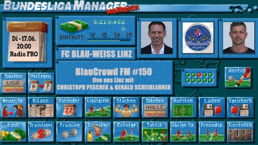 BlauCrowd sendet zum 150. Mal! In der 150. Ausgabe der geilsten Radioshow dieser Galaxis haben wir die obersten Führungsebenen auf und neben dem Platz des FC Blau-Weiß Linz zu Gast. Christoph Peschek feiert dabei seine Premiere im BlauCrowd Studio, wohingegen Gerald Scheiblehner uns mittlerweile zum vierten Mal beehrt. Wie ihr Fazit der letzten Saison aussieht, welche Pläne sie für die Kommende haben und womit die Fans in der Sommerpause rechnen dürfen, werden uns die beiden unter anderem dabei verraten. BlauCrowd #150 18.06. | 20:00 Radio FRO 105,0mhz | www.fro.at Nachzuhören auf www.arge-tor.org & Spotify -