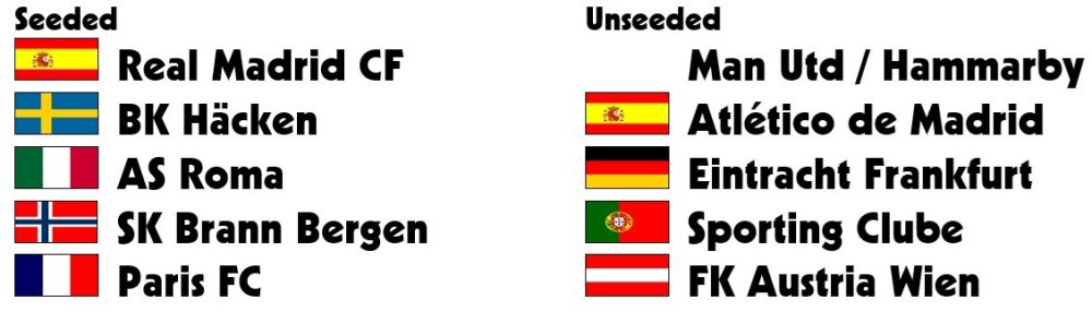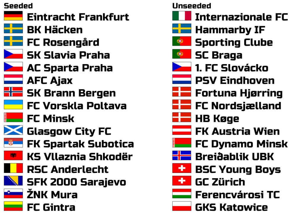 Setzliste für die nächste Runde im Women's Europa Cup mit dem Hinweis, dass Gintra, Ferencváros und Hjørring exakt punktgleich sind. Die UEFA reiht Gintra hier vor, damit müssten die eigentlich im Gesetzten-Topf sein.