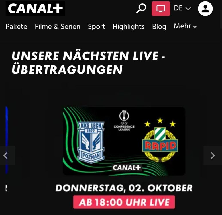 Beim nächsten Spieltag überträgt Canal+ NICHT Rapid-Fiorentina - und bevor es wieder heißt, da ist man ohnehin im Stadion und daher irrelevant: ich weise nur darauf hin, weil doch überraschend.