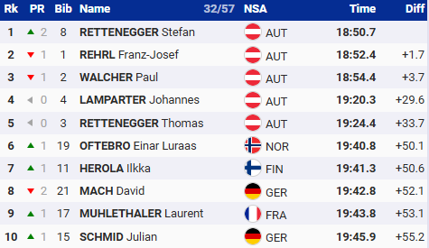 wenn sich Oftebro nicht deutlich steigert, wirds AUT oder GER heißen. also die Sportart, die sowieso wegen der nicht vorhandenen Dichte kritisiert wird, verliert eine weitere Siegernation. 2024/25: 6 versch. Sieger, 4 Nationen 2023/24: 3 versch. Sieger, 2 Nationen 2022/23: 5 versch. Sieger, 3 Nationen 2021/22: 5 versch. Sieger, 3 Nationen Herola wär wichtig, springt aber bislang auch bescheiden. mehr als 5 versch. Sieger würden mich diese Saison überraschen.