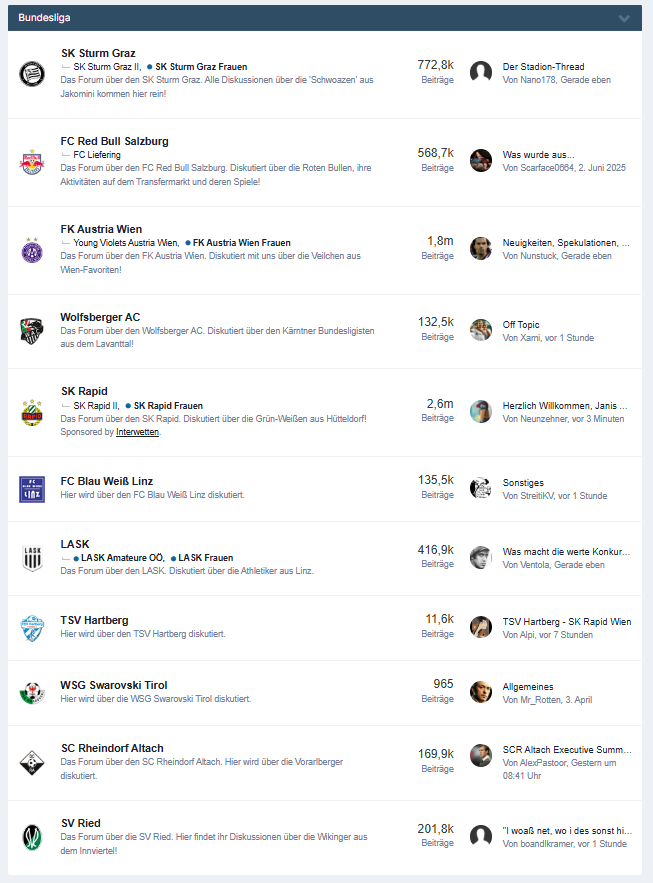 Bei der Bundesliga gibt's folgende Regelung um überhaupt einen Zulassungsantrag stellen zu können: SCHRIFTLICHE ERKLÄRUNG VOR DER ENTSCHEIDUNG DES ZULASSUNGSGEBERS Bevor die Entscheidung von der Ersten Instanz getroffen wird, hat der Zulassungsbewerber eine schriftliche Erklärung beim Zulassungsgeber vorzulegen, womit bestätigt wird, dass [..] d) in den zwölf Monaten vor der vom Zulassungsantrag umfassten Spielzeit kein Insolvenzverfahren über das Vermögen des Zulassungsbewerbers (oder seines ausgegliederten Profispielbetriebs gemäß Abschnitt 4.4.2) eröffnet wurde oder ein Insolvenzantrag mangels Masse abgewiesen wurde. Würde AK nächste Saison (26/27) in der RLM spielen, wäre eine Zulassung für 27/28 möglich, das das Insolvenzverfahren bereits länger als 12 Monate vorher eröffnet wurde. Allerdings ist das wohl irrelevant, da Austria Klagenfurt nächstes Jahr nicht in der RLM spielen wird, siehe AUF- UND ABSTIEGSBESTIMMUNGEN ZWISCHEN DER ZWEITHÖCHSTEN UND DRITTHÖCHSTEN LEISTUNGSSTUFE: § 1 Grundsätzliches (3) Ist über das Vermögen eines dieser Vereine oder dessen ausgegliederten Spielbetriebes zum Zeitpunkt des Meisterschaftsendes des Bewerbes, an welchem die betreffende Mannschaft teilnimmt (1. oder 2. Leistungsstufe), ein Insolvenzverfahren anhängig [...], steigt dieser Verein im nächsten Spieljahr nicht in die 3. Leistungsstufe ab, sondern ist vom zuständigen Landesverband in die 4. Leistungsstufe oder darunter einzuteilen. Auf die einschlägigen Bestimmungen der Bundesliga sowie § 4 dieser Bestimmungen wird verwiesen. Die Chance, das anhängige Insolvenzverfahren bis Meisterschaftsende (14.05.2026) beendet zu haben, liegen wohl bei 0%... Keine Ahnung ob das eurem Kasperlegger und dem Korruptijugo bekannt ist, die schwafeln ja schon wieder was von RLM...
