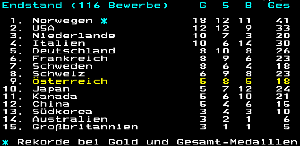 15. Schweiz hat einen Lauf, ist wieder bestätigt. Dann holst auch noch diese überraschende Bronze. Wird Zeit, dass diese Spiele vorbei sind, macht keinen Spaß mehr.