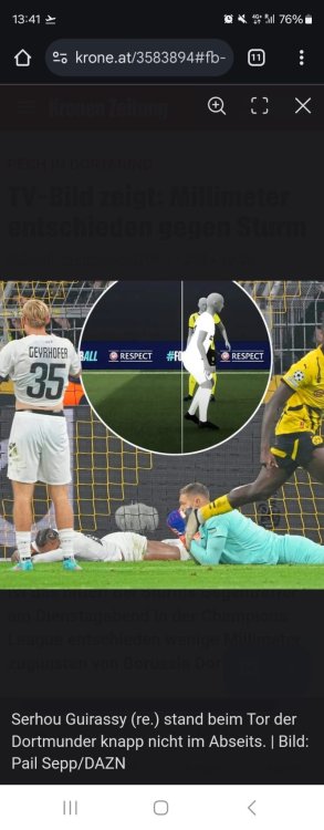 Thoughts? Hab zufällig bei dem Eckball ein Video gemacht und hier jetzt zwei Screenshots daraus gepostet. Aus der Sicht hinterm Tor hat es so gewirkt als wäre der Ball drinnen. Leider konnte ich die Szene in keiner Zusammenfassung finden… Ansonsten geile Auswärtsfahrt mit einer überragenden Performance von unserer Nordkurve! Rund um mich haben viele Dortmunder mehrmals das Handy gezückt und die Sturm Stimmung festgehalten. Die waren schwer beeindruckt, hat schon gestartet mit der Pyro bei der Hymne. Waren wohl ziemlich begeistert von der Performance! Leider ist der nach der 2HZ verdiente Punkt nicht rausgekommen…. Naja wird schon gegen Girona! -