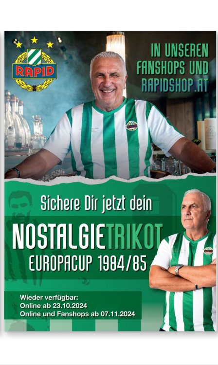 Ich kanns mir nicht vorstellen dass es noch eines geben wird. Ich denke dass man damit schon gegen Braga aufgelaufen wäre wenn sie eines geplant gehabt hätten. Ich hoffe aber dass ich mich irre. Am aktuellen Trikot stört mich der komische zu kurze Schnitt mittlerweile sogar noch mehr als das Design. Weil ob es einen nun gefällt oder nicht ist halt Geschmacksache. Aber dafür dass Rapid offensichtlich als einziger Verein einen anderen Schnitt bei den Trikots und Hosen hat, find ich einfach keine plausible Erklärung. und ja. Ich hab mich schon vor Wochen darüber beschwert. Ja, ich hab noch immer nicht damit abschließen können. Ja, ich hab so ziemlich alle Puma Trikots 24/25 gegoogelt und ja, es macht mich krank dass es scheinbar außer mir niemanden zu stören scheint!