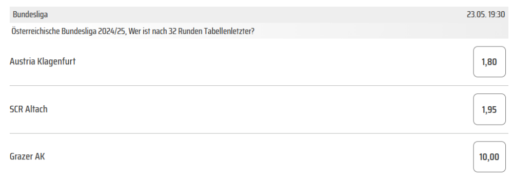 Danke für die Auflistung. Rein objektiv hat Altach sogar die "günstigste Auslosung" mit den 3 Heimspielen gegen WSG, GAK, Klagenfurt. 2 Siege sind da nicht ganz unrealistisch und die werden sie auch ziemlich sicher brauchen plus vielleicht noch ein X.