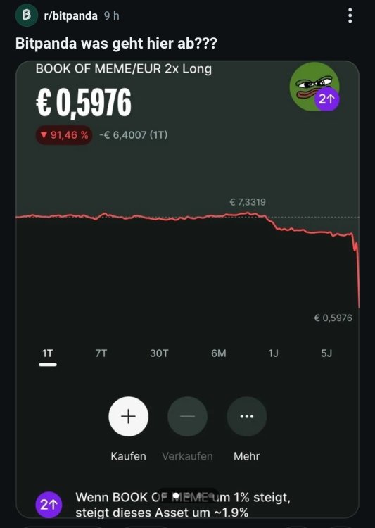 Leute kaufen auf einem Broker etwas mit 2x leverage, das "Book of Meme" heißt, und wundern sich dann, dass sie Geld verlieren. -