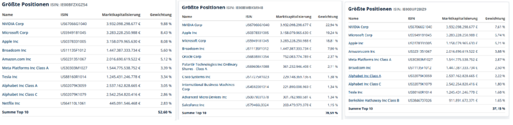Ok, das war also wirklich ernst gemeint. sorry, aber die Auswahl deiner Investments war so wild, dass ich mir erst nicht sicher war. Ich bin kein Finanzberater und will dir keine Tipps geben, wie du dein Geld anlegen sollst. Aber das Risiko, dem du dich mit diesem Plan aussetzt, halte ich für viel zu hoch, deshalb meine 2 Cents: Vorneweg, du überkomplizierst es: Xtrackers S&P 500 2× und Amundi MSCI USA 2× sind zu etwa 90 % identisch und somit redundant. Invesco Tech S&P US und SPDR Tech S&P US bilden exakt denselben Index ab – nur anderer Anbieter. UBS Solactive Global Pure Gold Miners und L&G Gold Mining ETF überschneiden sich ebenfalls zu > 90 %. Xtrackers MSCI World Information Technology und Amundi MSCI World Information Technology – wieder identischer Index. Invesco EQQQ und iShares NASDAQ-100 sind ebenfalls derselbe Index. Fazit: Bis auf die Mining-ETFs korrelieren alle anderen Fonds zu über 90 %. Die Top-10-Positionen sind weitgehend identisch und machen in allen ETFs zwischen 37 % und 79 % der Gesamtpositionen aus. zu den einzelnen ETFs Tech-ETFs (Invesco Tech S&P US, SPDR Tech S&P US, usw.): Sehr konzentriert, die letzten Jahre stark gelaufen wegen der Tech-Rally. Hauptsächlich Apple, Microsoft, Nvidia, Meta … – also kaum Diversifikation. Langfristig sicher Potenzial, aber extrem volatil. Im Worst Case kannst du in fünf Jahren auch > 50 % Verlust sehen. Amundi MSCI USA 2x & Xtrackers S&P 500 2x: Sieht aktuell gut aus, weil der Markt seit Jahren steigt. Aber bei Rücksetzern fallen sie doppelt so stark – und erholen sich nicht symmetrisch. Beispiel: Fällt der Index um 10 %, geht er von 100 → 90. Ein 2×-ETF verliert doppelt, also 100 → 80. Steigt der Index am nächsten Tag wieder 10 % (90 → 99), legt der ETF 20 % zu (80 × 1,2 = 96). Ergebnis: Der Index steht fast wieder bei 100 (−1 %), der ETF aber nur bei 96 (−4 %). Der Grund: Der Hebel wird täglich neu gesetzt – Gewinne und Verluste wirken auf unterschiedliche Ausgangswerte. Je öfter es rauf und runter geht, desto stärker greift dieser Effekt („Volatility Decay“). Am Ende kann der Index bei ± 0 % stehen, während der Hebel-ETF trotzdem deutlich im Minus ist. Wärst du genau vor einem Jahr eingestiegen, wären die Kurse des ungehebelten und 2x gehebelten SP500 gleich. wärst du Anfang des jahren eingestiegen wärst du 7% im Minus und 10% unter dem Wert eines globalen ETF (VWCE zb). UBS Solactive Global Pure Gold Miners & L&G Gold Mining: Das Problem mit Goldminen-Aktien: Sie sind keine reinen Gold-Investments, sondern zyklische Aktien mit hohem Risiko. Zwar profitieren sie von steigenden Goldpreisen, hängen aber auch von Energie-, Lohn-, Politik- und Marktbedingungen ab. In Crashphasen fallen sie meist stärker als Gold selbst. 2022 fiel Gold ~5 %, viele Minen-ETFs aber über 25 %, zwischen 2020–2022 sogar > 50 %. Die Frage ist also, was du mit dem Geld willst. Wenn du es in 5 Jahren brauchst, solltest du mMn risikoärmer investieren, z. B. teilweise in Anleihen, teilweise in breit gestreute Welt-ETFs oder den ungehebelten S&P 500 bzw. als Tech-Option den Nasdaq-100. Die Aktienmärkte sind in den letzten Jahren schon stark gelaufen, es ist also fraglich, wie viel Luft da noch ist oder ob nicht bald eine Korrektur kommt. Wenn es aber „Spielgeld“ ist und du das Risiko bewusst eingehen willst, kannst du natürlich spekulativer investieren, nur eben mit Bewustsein fürs Risiko.