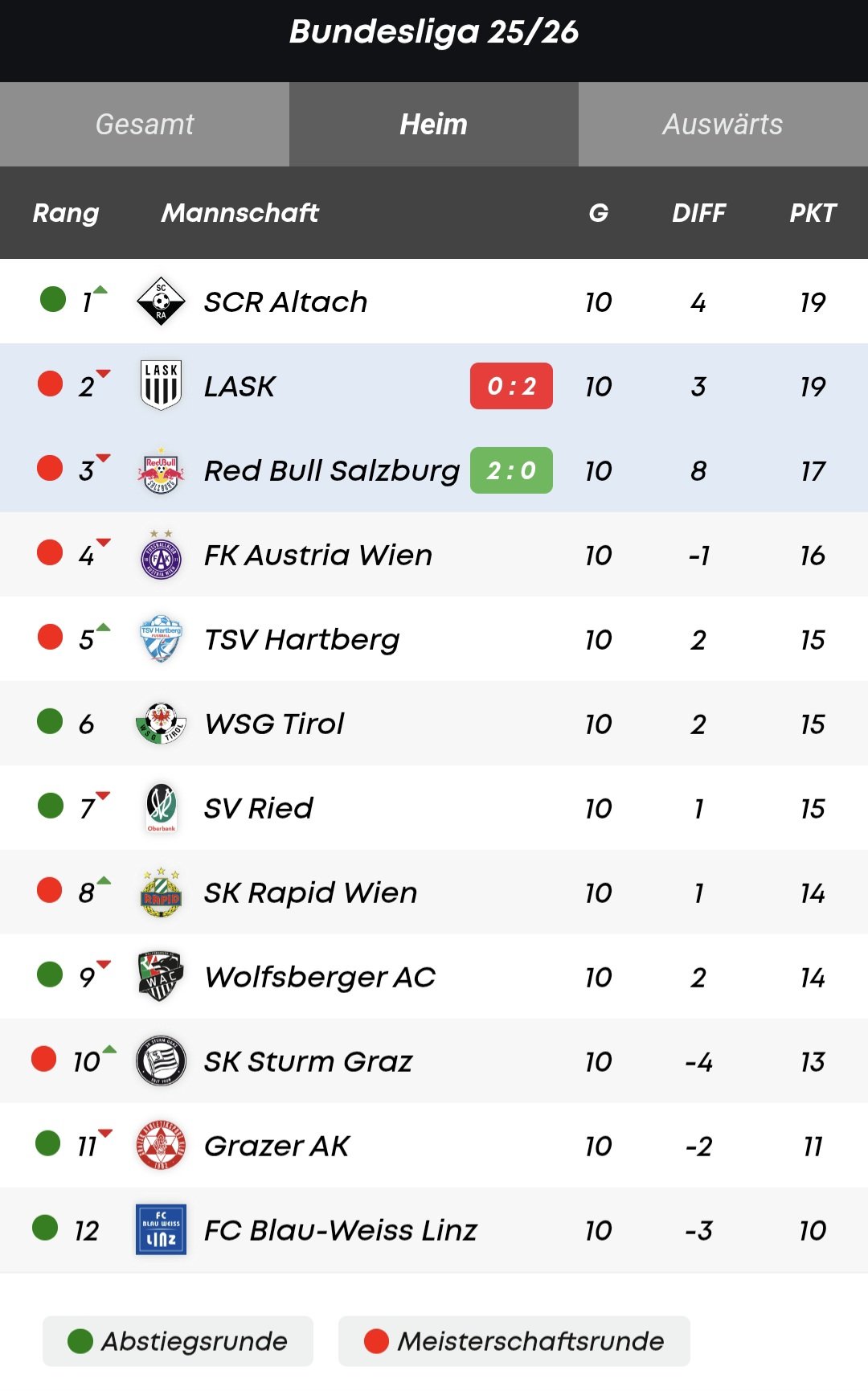 Naja, bei uns in Altach sind viele "froh" wenn wir nicht absteigen. Klar ist OPO da hilfreich, aber die Erwartungen bzw. der Wunsch nach OPO hält sich eher gering! Wenn man denkt was diese Saison für uns (und die anderen kleinen) möglich gewesen wäre ...