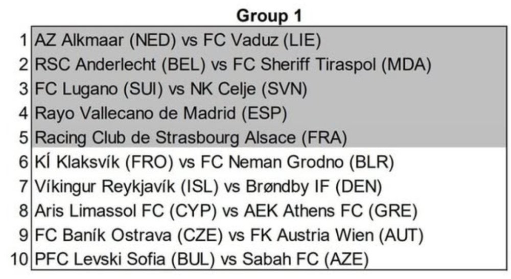 Laut „football.meets.data“ war für kurze Zeit die Gruppeneinteilung für die morgige Auslosung auf Wikipedia sichtbar. Natürlich unklar ob es sich dabei um einen Fehler oder tatsächlich um einen voreiligen Leak handelt. Laut dieser Einteilung wären unsere 5 möglichen Gegner: Omonia Nikosia / Araz AZ Alkmaar / Vaduz FC Lugano / Celje Jagiellonia / Silkeborg Fiorentina Das wäre mMn eine ziemlich gute Voreinteilung für uns, mit nur einem Top 5 Klub und der AZ Alkmaar Begegnung wäre man da mit den anderen 3 den größten Brocken aus dem Weg gegangen, also hoffen wir dass was wahres drann ist an dem Leak