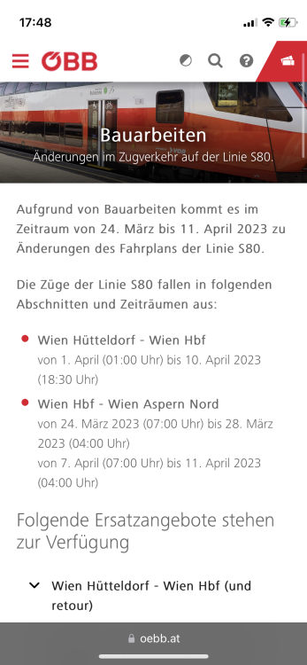 Neuigkeiten bei der S 80 nach Hütteldorf Info ORF.at Die ÖBB kündigten mit dem neuen Fahrplan auch Verbesserungen vor allem im Nahverkehr an. In Wien kommt auf der Schnellbahnlinie S80 zwischen Wien-Hütteldorf und Wien-Aspern Nord eine neue Nacht-S-Bahn. Diese verkehrt am Wochenende und in den Nächten vor Feiertagen im 30-Minuten-Takt, mit Anschlüssen an die Nacht-S-Bahn in Wien-Meidling (Richtung Mödling) und an den Nachtverkehr der Badner Bahn (Richtung Baden). Zwischen Wien Hauptbahnhof und Wien-Aspern Nord verkehren künftig werktags zwei zusätzliche Frühzüge. APA/Helmut