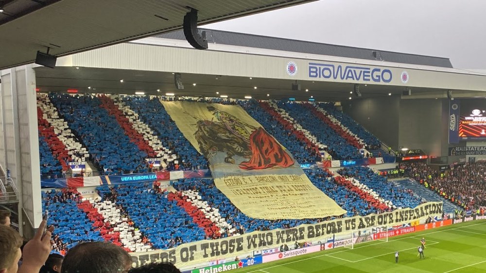 Ich denke da immer an den IBROX Park, den Union Bears hat man vorgeschrieben auf welche Tribüne sie sich stellen sollen und ihnen war es egal. Nun sieht es im Stadion so aus, dass der organisierte Support der Heimfans auf der selben Tribüne ist wie der Auswärtssektor. Wird hoffentlich bei uns auch so bleiben, dass man sich nicht vorschreiben lasst wo man stehen darf. Im Bild ganz rechts das sind die Away fans...