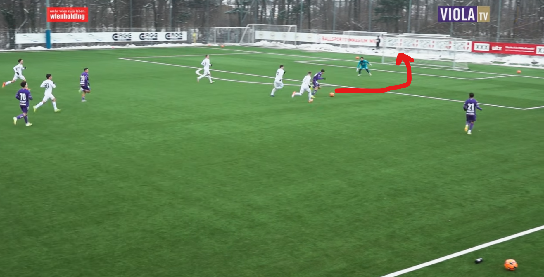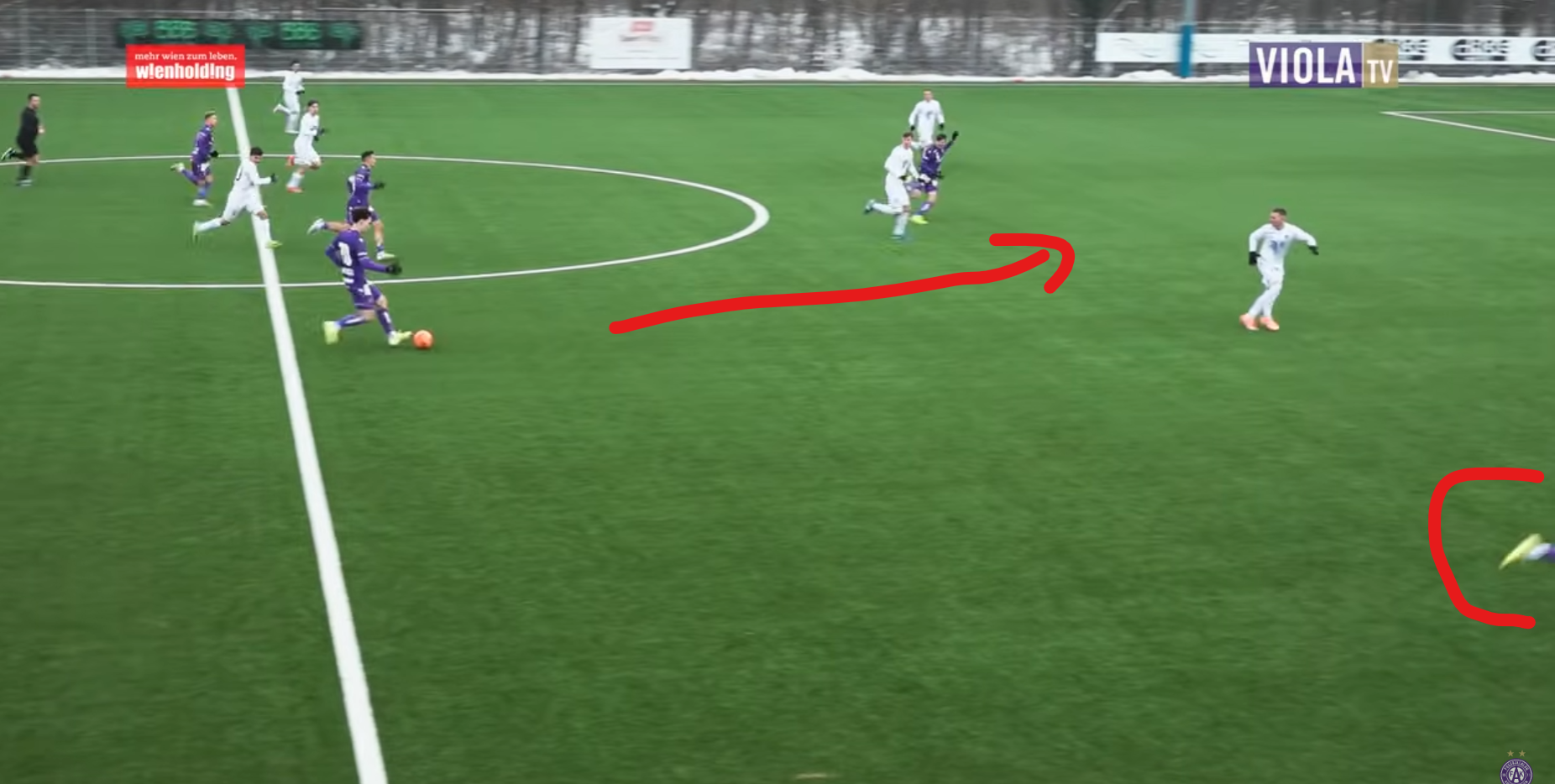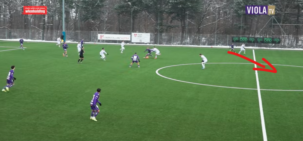 Hängt seinen Mann auf der Seite ab, zieht ins Zentrum, bindet beide IV und hat natürlich eklatante Tempovorteile, wodurch auch der RA komplett frei wird, weil Aleksa das Zentrum auslastet bzw. mit seinem Tempo überfordert: