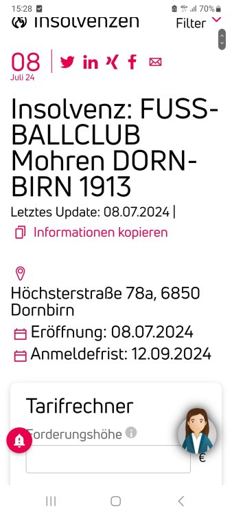 Am Landesgericht in Feldkirch geht es am 26. September um die Zukunft des FC Dornbirn. Für den Insolvenzverwalter in der Causa „FC Dornbirn“ läuft alles nach Plan, doch erst am 26. September wird sich in finanzieller Hinsicht die Zukunft des Vorarlberger Traditionsvereins FC Dornbirn entscheiden. Dann nämlich findet das Prüfungs- und Abstimmungsverfahren im Sanierungsfall am Landesgericht in Feldkirch statt. Bis 12. September, so Mag. Andreas Droop, besteht für die Gläubiger die Möglichkeit, ihre Forderungen anzumelden. Danach, so der Rechtsanwalt, werde er als bestellter Insolvenzverwalter die Forderungen prüfen und dementsprechend aufarbeiten. Mehr will und kann Droop, der persönlich durchaus immer wieder auf Fußballplätzen in Hard, Altach oder bei der Austria anzutreffen ist, zum aktuellen Fall nicht sagen. „Es handelt sich um ein nicht öffentliches Verfahren. Somit kann sich nur der Vereinsvorstand öffentlich dazu äußern, sofern es von Clubseite auch gewünscht wird.“ Als durchaus positiv beurteilt er jedoch die Club-Entscheidung, sich einem Sanierungsverfahren in Eigenverantwortung zu unterziehen. Das sichere den Gläubigern im Gegensatz zu einem Verfahren in Fremdverwaltung eine 30-Prozent-Quote – gegenüber einer 20-prozentigen Quote. Für Droop eine durchaus sinnvolle Art, ein Sanierungsverfahren anzugehen. Indem man eine Insolvenz frühzeitig anmelde, um sich – in dem Fall der FC Dornbirn – nachhaltig zu sanieren. Der aktuelle Fußballbetrieb hingegen beeinflusse seine Arbeit in keinerlei Hinsicht. Wichtig sei für ihn vielmehr, dass bislang seitens der Verantwortlichen „alles ordentlich aufgearbeitet wurde. Ansonsten hätte es keine Weiterführung gegeben“.