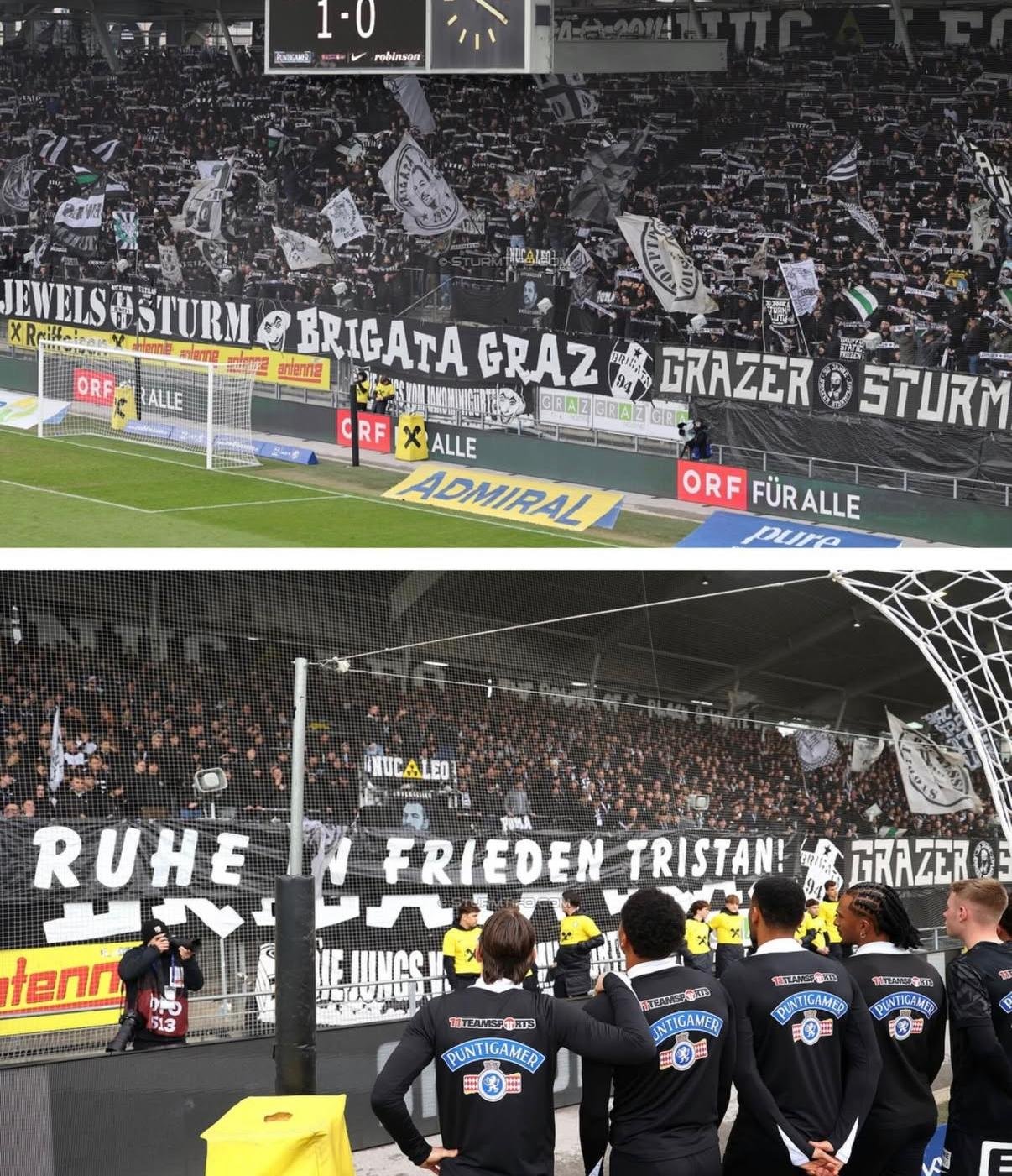 Danke Graz. im Vergleich zur grünen Brut die bei der trauerminute beim Derby gepfiffen und nicht die fahnen runtergenommen hat eine richtig ehrenhafte Aktion.