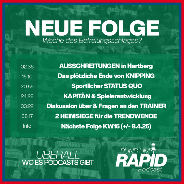 In der heutigen Folge feiert mit Alexander Huber vom Kurier ein neuer Gastexperte Premiere. Er gehört zu jenen Journalisten, die mit am aller nächsten am SK Rapid dran sind und dementsprechend hat er viel Interessantes zu erzählen. Gemeinsam werfen wir einen ausführlichen Rundumblick auf das was diese Saison bislang in den Büchern ist, wie die aktuelle Momentaufnahme einzuordnen ist und was in den kommenden Phasen entscheidend sein wird. Auch die Transferzeit für die Geschichtsbücher des SK Rapid ist natürlich eines der vielen Themen und dazu hab ich noch eine überarbeitete/aktualisierte Grafik für euch 💚 Themen der Folge im Detail: STARTPHASE MIT PETER STÖGER l GESCHICKTE KOMMUNIKATION l VERTRAUEN & TEAMVERANTWORTUNG l ERFAHRUNGSSCHATZ & WERTSCHÄTZUNG l MEDIALE REKORDE l ARNAUTOVIC SAGA l KADERBREITE & TIEFE l MEHR BANKSPIELER l FRÜHERE WECHSEL l „AMTSSPRACHE ENGLISCH“ l KLARE BOTSCHAFTEN l ÖSTERREICHER TOPF l NACHFRAGE & ANGEBOT l TALENTE DIE ZU FRÜH DEN KOPF HÄNGEN LASSEN l DURCHLÄSSIGKEIT l LEISTUNGSPRINZIP l WILLE & MUT l DURCHHALTEVERMÖGEN l TALENT NUR EIN FAKTOR l TRANSFERZEIT FÜR DIE GESCHICHTSBÜCHER l REKORD EINNAHMEN l REKORD AUSSAGEN l NEUE DIMENSIONEN l ERNTE 1. FRÜCHTE l QUALITÄTSSTEIGERUNG l WERTSTEIGERUNG l STRATEGISCHE VORGRIFFE l PROFILE & DER MARKT l KATZERS KLARE RICHTUNG l KADERPLANUNG ETABLIERT l GLÜCKSFALL NINO RAUCH l MODERNES SCOUTING l SCOUTING COORDINATOR AFRICA l HINTERGRÜNDE TRANSFERWERTE l BEZAHLTES POTENTIAL l SCHLÜSSEL EUROPÄISCHE BÜHNE l DATENRANGLISTEN l MARKTPLATZIERUNGEN l STATEMENT SPRY l AUFSTEIGER MBUYI l SONDERLOB FÜR HORN l BEEINDRUCKENDER ROMEO l ANKER NDZIE l SÄULE CVETKOVIC l FORMSTARKER BOLLA l KÄMPFER DEMIR l PRÄSIDIUMSWAHLEN l WIRTSCHAFTLICHE SICHERHEIT l DANIELA BAUER l SPONSOREN l UNVOLLENDETES VOLLENDEN l MITGLIEDERREKORD l ZIEL KARTENKNAPPHEIT l FAKTOR FANS l GRUNDVERTRAUEN l EUROPAPOKAL l UNTERSCHÄTZE POLEN l UNGLÜCKLICHES LOS l TOP-8 SCHWIERIG l ÜBERWINTERN ALS ANSPRUCH l MOMENTAUFNAHME l GUTE BASIS l LEDIGLICH DER BEGINN l ZAUBERWORT KONSTANZ l PEAK IM FRÜHJAHR l ZUKUNFTSMUSIK l NÖTIGE ENTWICKLUNGEN l DOSIERTES RISIKO l STABILITÄT & SICHERHEIT l „ERGEBNISFUßBALL“ l SELBSTVERSTÄNDNIS ENTFALTEN l SPIELERISCH STEIGERN l PFLICHT & KÜR l ABGELEGTE SCHWÄCHEN l FOKUS GEWINNEN l SELBSTVERSTÄNDNIS ETABLIEREN l SERIEN BRECHEN l MEDIALE FAVORITENROLLE l SAISONZIEL Link zum Webplayer: https://www.buzzsprout.com/1972142/episodes/17915029 Ich wünsche euch gute Unterhaltung mit Alexander Huber vom Kurier & mir 🎧 In unbändiger Liebe zu Rapid! Euer Maximilian