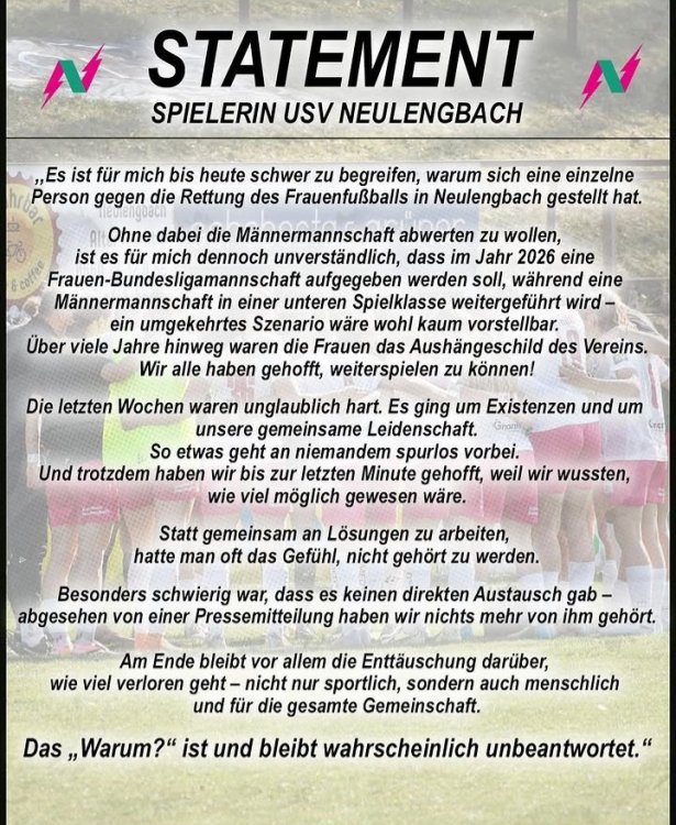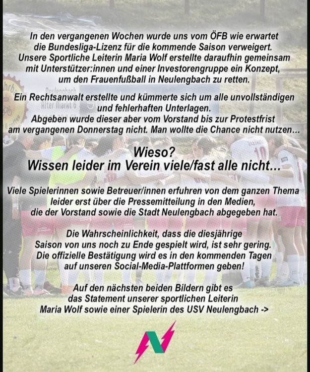 Ja, aber warum hat der Vorstand den Leuten die Kontaktaufnahme mit ihm verweigert, die die finanziellen Mittel bereitstellen wollten? Denen hätte er ja erklären können, was du gerade geschrieben hast. Das ist das was mir komisch vorkommt. Ogris hat in seinem Podcast gesagt, dass der Obmann untergetaucht ist und tagelang für niemanden erreichbar war. In so einer Situation? Ob er dann danach wieder aufgetaucht ist, weiß ich natürlich nicht. Das Statement von Neulengbach legt nahe, dass der Obmann nicht wollte, dass es weitergeht. Ob da was Wahres dran ist, kann man als Außenstehender natürlich nicht wissen. -