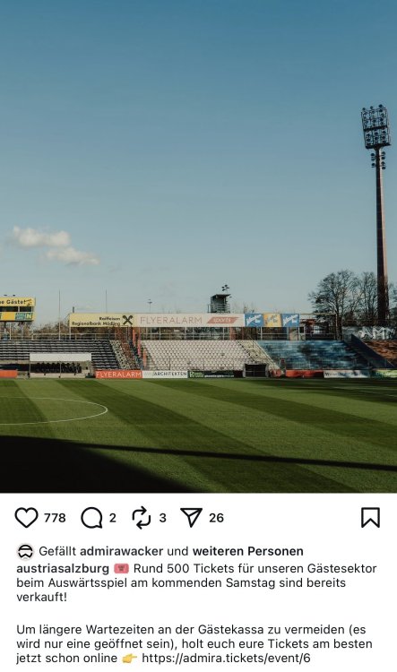 Diesen Beitrag von Austria Salzburg interpretiere ich so, dass sie gegenüber der Haupttribüne untergebracht sind: Quelle: Instagram -
