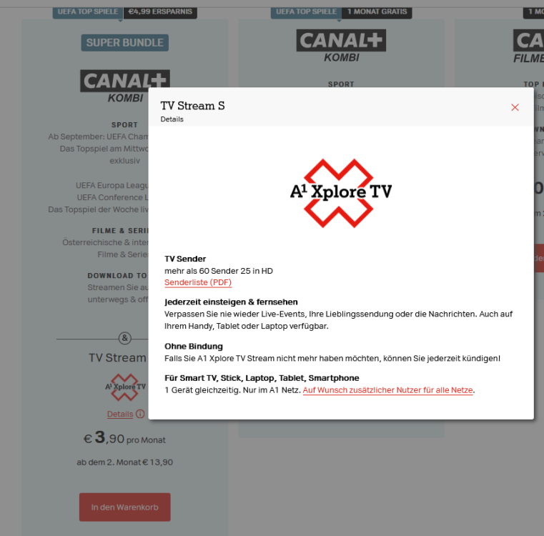 Das bedeutet ich kann, wenn ich das Canal+ Kombi nehme monatlich kündigen? Und was bedeutet nur im A1 Netz?