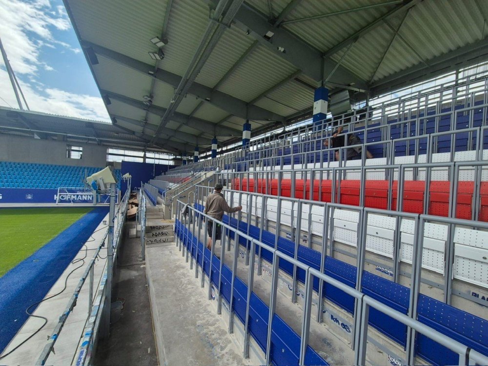 Am Wochenende wurden die letzten fehlenden "Sitze" geliefert, welche beim Eröffnungsspiel noch nicht montiert waren - hatten da wohl Probleme mit der Lieferung. Da die Sitzer 4x verschraubt werden, dürfte es für die Hartbergpartie eng werden, dass alles final fertig ist.