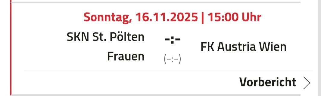 Laut ÖFB-Seite wurde das Cup-Achtelfinale in St. Pölten auf Sonntag, 16.11.2025 um 15:00 Uhr terminisiert. Edit: An dem Wochenende haben die Männer Länderspielpause. Wäre schön, wenn sich da schon etliche violette Fans zum wohl vorweggenommenen Endspiel in St. Pölten einfinden würden. -