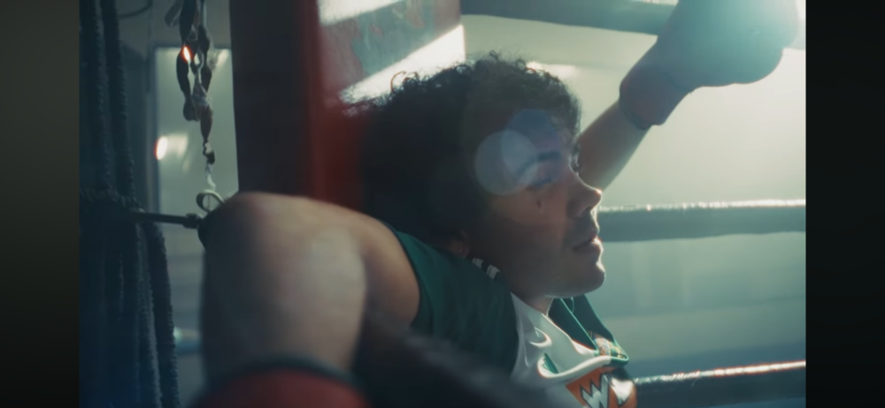 Wiener underground Musiker/Influencer En6o (Handychillen) in Rapid Montur bei seinem letzten Musikvideo.
