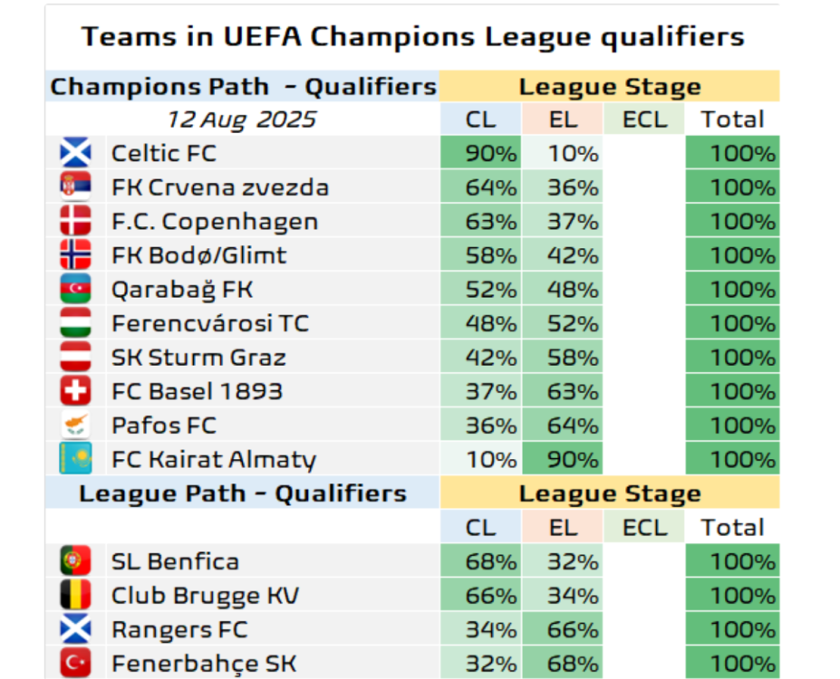 footballmeetsdata sagt dazu folgendes: Und so schätzen sie unsere Chancen für die CL ein, gar nicht mal sooo trist. Sie räumen uns sogar bessere Chancen ein als Basel gegen Kopenhagen oder Rangers gegen Brügge. -