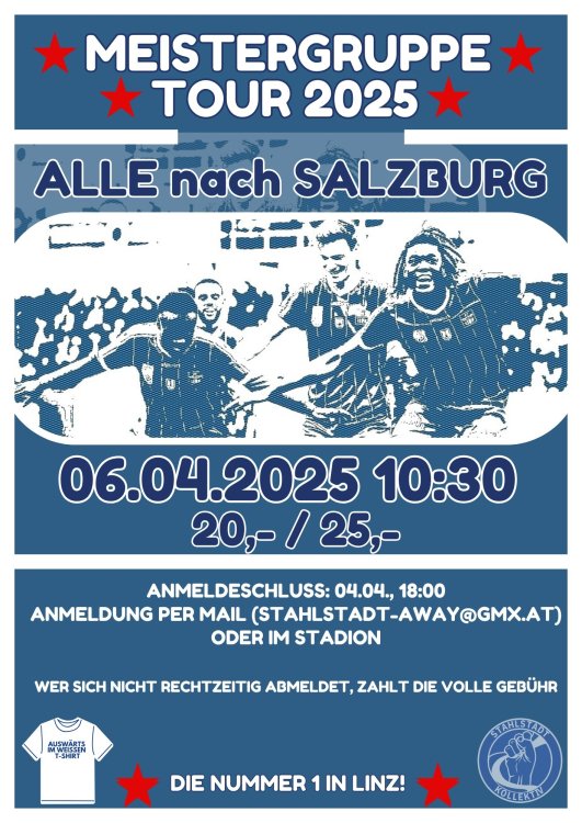 Der Preis: unschlagbar Die Fahrzeit: richtig kurz Der Anlass: der Schönste, den man sich vorstellen kann. Richtig - es geht um das Auswärtsspiel in Salzburg. Anmeldungen sind bereits möglich! -
