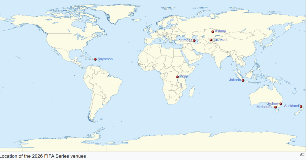 5. Die FIFA Series findet aktuell schon zum zweiten Mal statt. Die erste Ausgabe gab es 2024 und da war auch unser WM-Gruppengegner Algerien dabei und konnte sich in ihrer Gruppe durchsetzen gegen Bolivien, Südafrika und Andorra. An der FIFA Series 2026 nehmen heuer 34 Teams aus 6 Konföderationen teil. Gespielt wird an folgenden Standorten: Der Modus und weitere Infos zur Series sind hier nachzulesen: https://en.wikipedia.org/wiki/2026_FIFA_Series_(men's_matches) Es gibt keine Unentschieden. Elfern entscheidet, das unterlegene Team bekommt aber einen Punkt für die Tabelle. Also ich persönlich finde diese Series spannend und ein Upgrade zu den normalen Testspielen. Mit dieser Series werden viele interkontinentale Duelle ermöglicht. Hoffentlich nimmt da Österreich auch mal teil bzw. wird von der FIFA eingeladen. Die Palette an Teams ist sehr breit von Australien als bestgereihtes Team (Platz 27) bis hin zu den U.S. Virgin Islands auf Platz 207 der FIFA-Weltrangliste. Dazwischen Teams wie Chile, Bulgarien, Sierra Leone, Puerto Rico, Solomon Islands oder Macau. Erwähnenswerte Ergebnisse aus meiner Sicht bisher: - ) Liechtenstein (Platz 205 der FIFA-Weltrangliste) hat überraschend in Kigali (Ruanda) Tansania (Nummer 110 der Welt) geschlagen. - ) Die meisten Tore fielen beim Spiel in Jakarta zwischen Bulgarien und den Solomon Islands, es endete 10:2.
