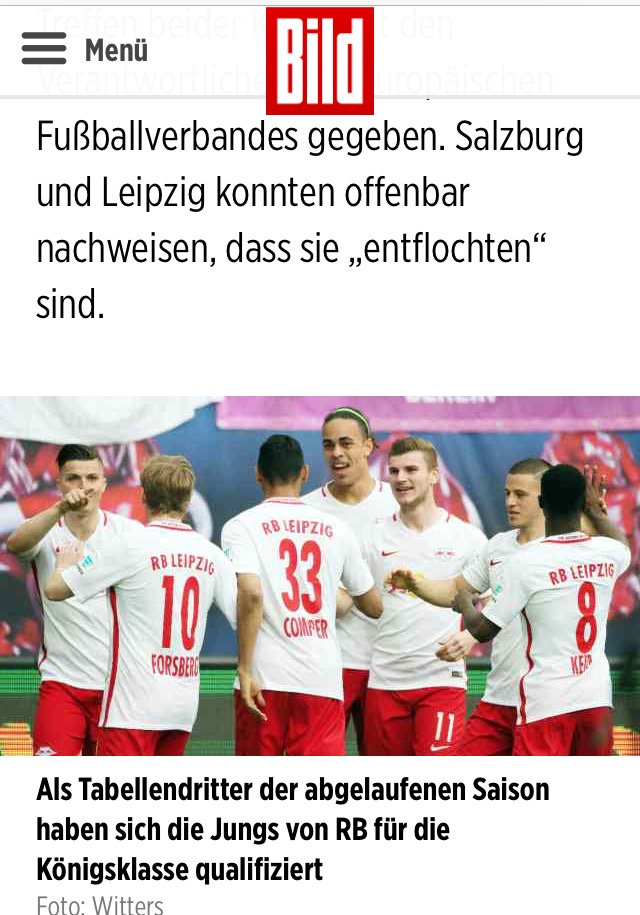Mitchell "El Loco Chefe" Geschrieben 20. Juni 2017 gerrybe schrieb Gerade eben: "Weiter wurde auch der internationale Auftritt des FC RB Salzburg überarbeitet. Die Präsentation der neuen Trikots für die UEFA Bewerbe gibt es kommende Woche am Donnerstag, den 29. Juni 2017 bei einer Pressekonferenz im Trainingslager in Leogang. http://www.weltfussball.at/news/_n2793310_/uefa-freizeichen-fuer-leipzig-und-salzburg/ Danke dir! 0 Zitieren Diesen Beitrag teilen Link zum Beitrag Auf anderen Seiten teilen More sharing options...