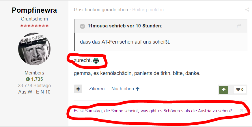 Pompfinewra Grantscherm Geschrieben 3. August 2017 11mousa schrieb vor 10 Stunden: dass das AT-Fernsehen auf uns scheißt. zurecht. gemma, es kernölschädln, panierts de tirkn. bitte, danke. 0 Zitieren Diesen Beitrag teilen Link zum Beitrag Auf anderen Seiten teilen More sharing options...