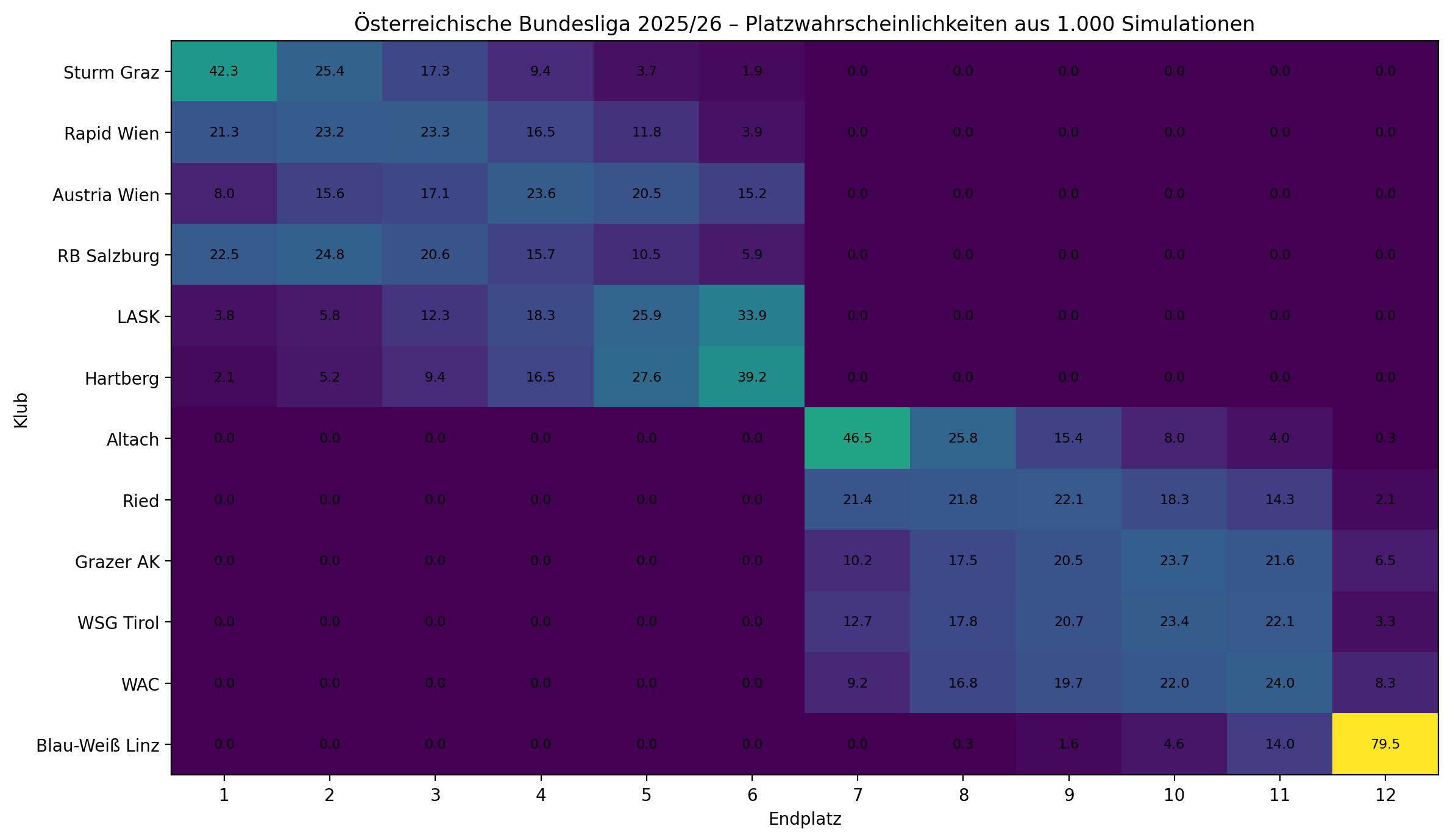 MegamanX Postinho Geschrieben vor 4 Stunden SturmHannes94 schrieb vor 13 Minuten: Ein echtes Schnittspiel: Hab mithilfe der KI die restliche Saison 1000x durchsimulieren lassen, mit Berücksichtigung der Form der letzten 10 Spiele. Gewinnen wir in Wien, steigt unsere Chance auf den Meistertitel auf über 50 %. Verlieren wir, sinkt sie auf unter 20 % und die Simulation sieht uns in diesem Szenario dann sogar hinter der Austria auf Platz drei. Oder es geht X aus. Mit welcher KI/Tool? 0 Zitieren Diesen Beitrag teilen Link zum Beitrag Auf anderen Seiten teilen More sharing options...