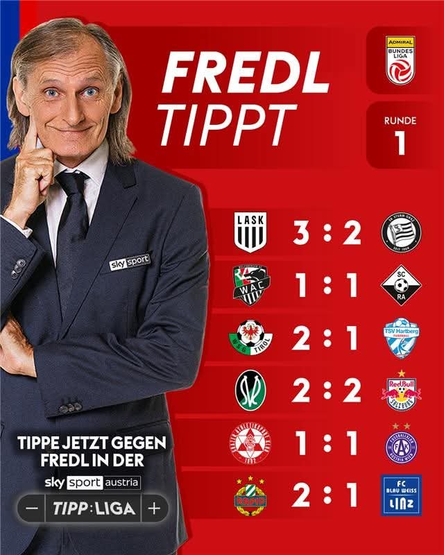 glaube, das erste Mal, daß ich mir denk: Kann ich mir vorstellen. Bin langsam besorgt um den Fredl, den Lichtblick auf Sky, der einzig leiwande Irre unter diesen Fußballjournalisten. Irgendwas stimmt nicht mit ihm. Alien Fredl?