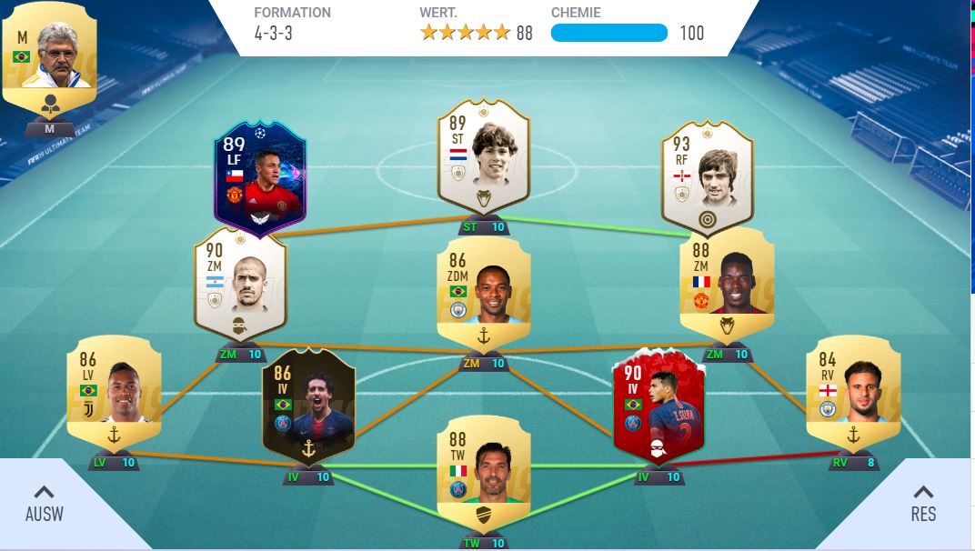 Best hat mir knappe 300k gekostet. Hab schweren Herzens meinen Scholes dafür eingetauscht (online war er mir zu unbeweglich..) und 2x Kroos, David Silva, Thiago Silva etc. aus den Packs gezogen, die ich direkt wieder eintauschen konnte. Dann für Scholes Pogba als Ersatz geholt - Vidal wird beim anderen Team noch ausgetauscht. Inb4 - ich spiel seit FIFA 09 mit 2 Teams - taugt mir allein zwecks der Abwechslung mehr.