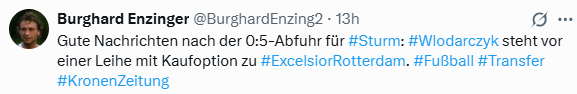 Hoffentlich wars eine gute Entscheidung ihn für 45 Minuten bei Sturm II einzusetzen. Im Winter kannst ihn jetzt, wenn er zu wenig Einsatzzeit bekommt, sonst wieder nicht weiterverleihen. Daumen sind gedrückt, dass es diesmal was wird.