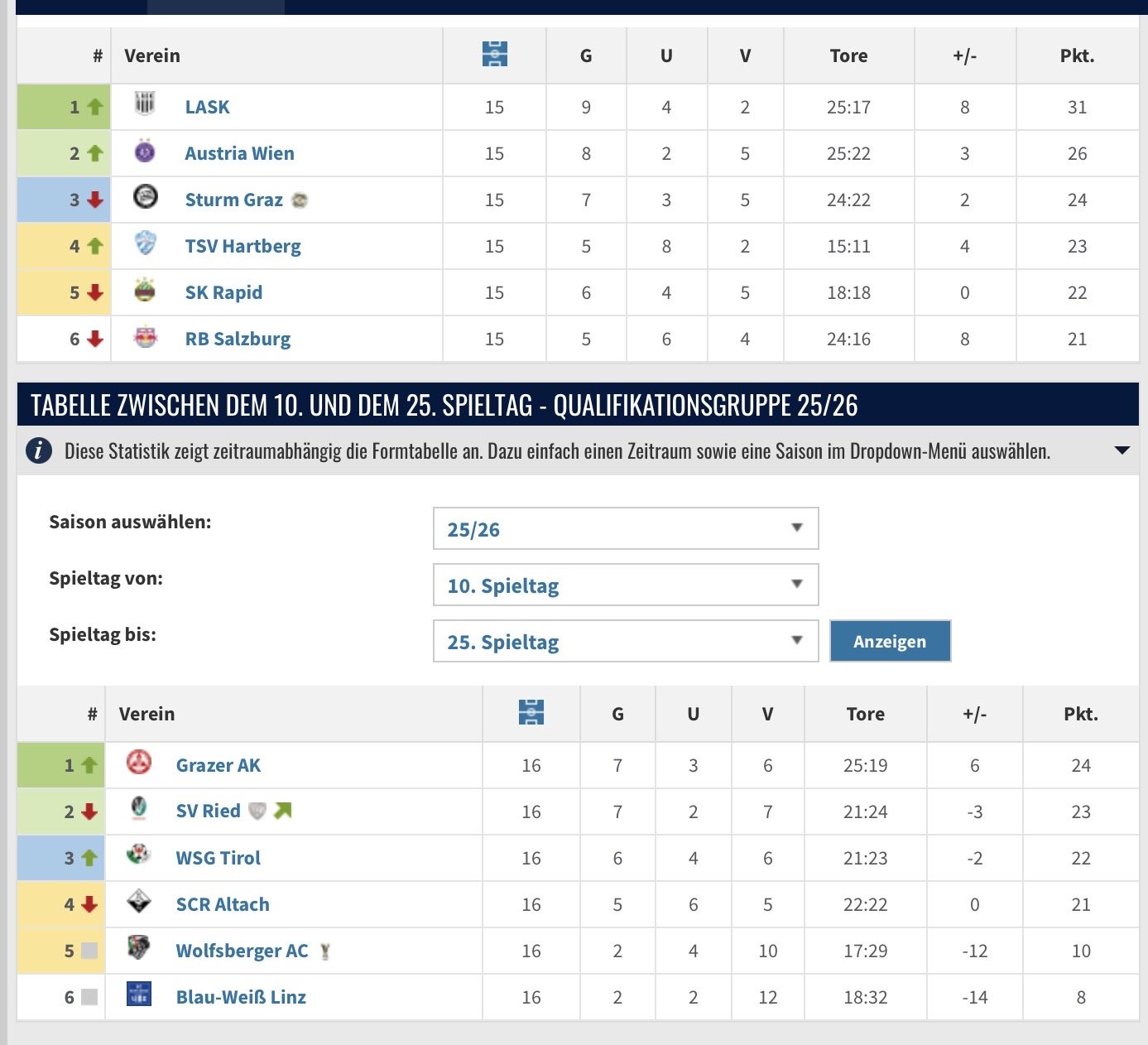 Autumla Beruf: ASB-Poster Geschrieben vor 4 Stunden 12 hours ago, oldno7 said: Wie hoch ist eigentlich unser Punkteschnitt seit diese ominösen „Abstiegsgespenster“ im TZ aufgehängt wurden? 1,5 wenn ich die richtige Runde rausgesucht habe. Zumindest jetzt Platz 3, könnten aber noch von ein paar Teams heute überholt werden: 1 Zitieren Diesen Beitrag teilen Link zum Beitrag Auf anderen Seiten teilen More sharing options...