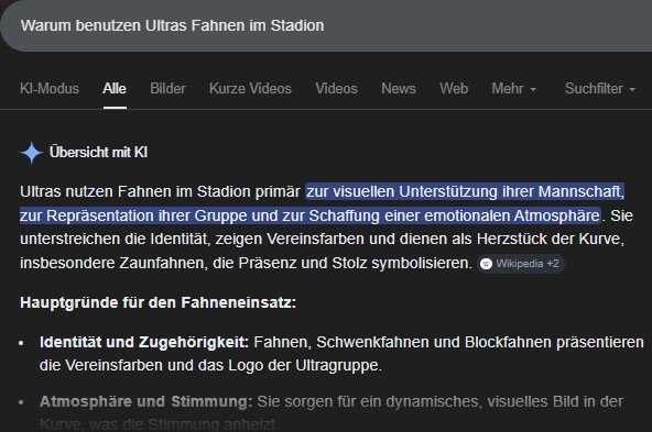 Snore Sehr bekannt im ASB Geschrieben vor 15 Minuten Ich möchte noch mal hervorheben das es beim WAC halt speziell ist, da siehst du halt wirklich nix, und du hast da auch keine Möglichkeit deine Platz zu ändern oder verbessern. Wenn das unsere DNA ist dann ist das vollkommen in Ordnung, Fahnen gehören definitiv dazu, gibt ja für jeden die Möglichkeit auszuweichen. Der Ausdruck Kurventouristen triggert mich persönlich aber schon, der Großteil hier kommt aus der Kurve und fühlt sich ich dieser vor allem Auswärts noch immer sehr wohl. Immerhin trifft man dort Freunde und alte Wegbegleiter. Eine Frage erlaube ich mir aber jetzt zum Abschluss, und es würde mich echt freuen eine Antwort von echten Insidern zu bekommen: Wen genau bringt das was wenn 90 Minuten durchgehend die Fahne geschwenkt wird, Fotos wie von @Graz_Umgebung gepostet kann ich in den ersten 10 Minuten auch machen. Dem Großteil im eigenen Sektor eher nichts, die Mannschaft wird hoffentlich auch nicht durgehend in den Sektor schauen ob eh noch Bewegung ist. Und die gegnerischen Fans werden denk ich auch lieber den Kick anschauen wie unsere schönen Fahnen? Ich will auch wirklich gar nix ändern, soll einfach nur eine Diskussion sein. Wenn ich mit dem @Autumla mein Bier beim nächsten WAC Kick im Sitzen trink, und wir können uns mit einigen 100 Roten auch noch über das Spiel unterhalten dann geht die Welt mit Sicherheit für niemanden unter. 0 Zitieren Diesen Beitrag teilen Link zum Beitrag Auf anderen Seiten teilen More sharing options...