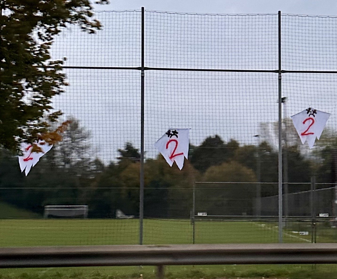 Hat jemand ne Idee was das zu bedeuten hat bzw. von wem es kommt? Heute früh beim Trainingszentrum am Zaun entlang der Straße - sehr viele davon...