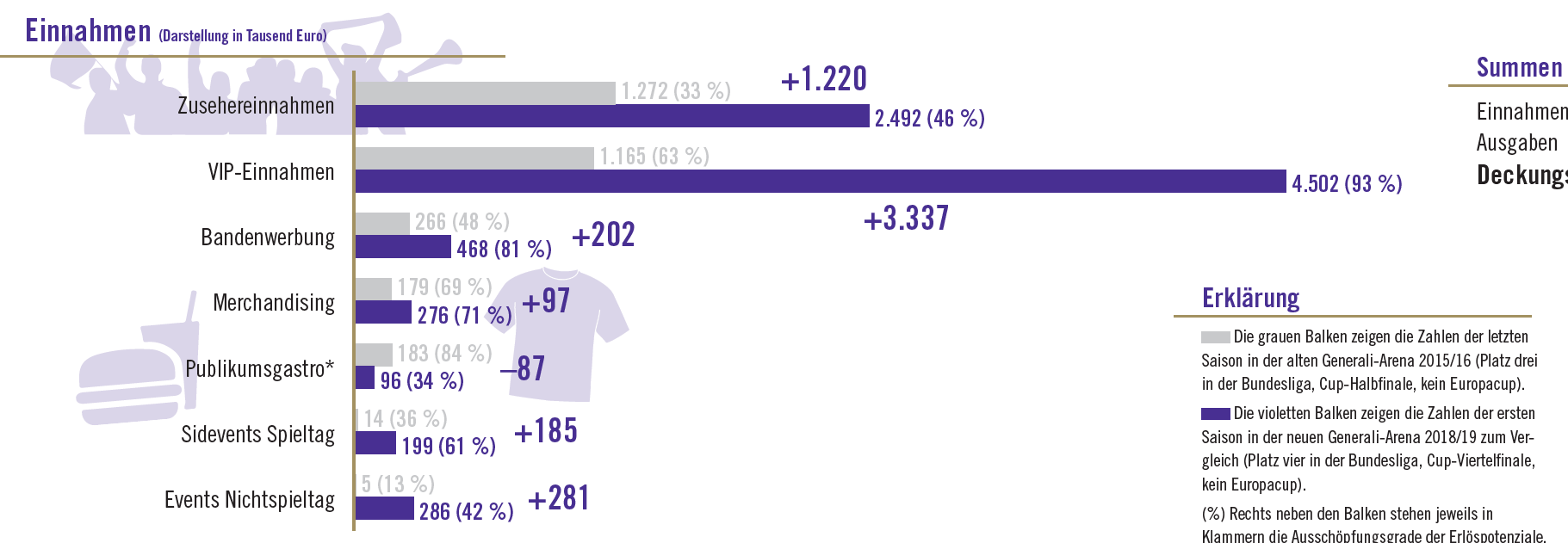 pramm1ff V.I.P. Geschrieben vor 2 Stunden Aus dem alten Geschäftsbericht, der Vergleich was man in der ersten Saison im neuen Stadion reinholte. Merchandising lag 23/24 bei 1,2 Mio Euro, also dem Fünffachen vom 18/19. Allein am vergangenen Sonntag hat man 10% des Jahresumsatzes vom Vorjahr reingeholt bzw. 50% dessen, was man in der Saison 18/19 erlöste. "Eintrittsgelder", also wohl die Summe aus VIP und Zusehereinnahmen, lag bei 8 Mio und damit um 1 Mio höher als der Erwartungswert. Gastro und sonstige Umsätze machten 1 Mio aus, was mit den Positionen in der Grafik auch ca. zusammenpasst. Darf man da ein Lob an B2C aussprechen? Wobei natürlich auch B2B einen Anteil an den Zusehereinnahmen hat, immerhin sind die mit dem VIP ja für den Haupt-Umsatzeinbringer verantwortlich. 0 Zitieren Diesen Beitrag teilen Link zum Beitrag Auf anderen Seiten teilen More sharing options...