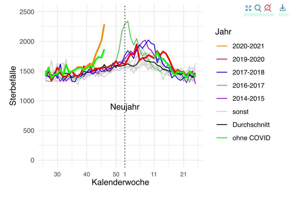 Sterberate in Österreich bis KW 46 (c) Erich Neuwirth