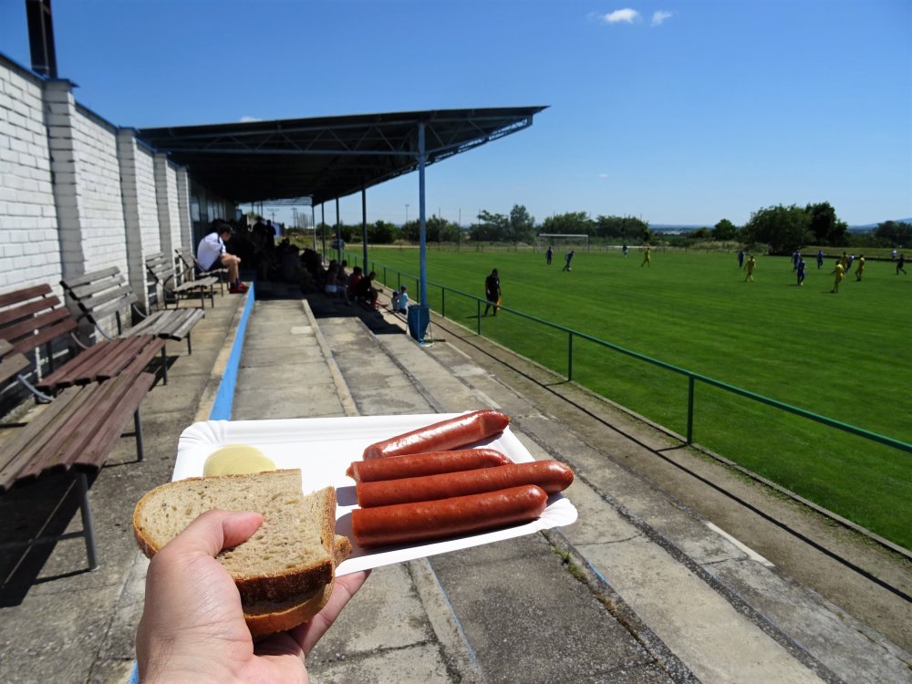 Heffridge "Inside everyone there´s a litte nut!" Geschrieben 12. Juli 2021 An diesem Samstag sollte es mir verwehrt bleiben, ein Spiel im Salzburger Landescup anfahren zu können. Aber zum Glück bekam brucki die Werbeeinschaltung auf Facebook, dass der FC Miroslav gegen den FC Moravský Krumlov zu einem Testspiel und einem Cigáro-Frühstück einlädt. Dass gefällt auch Andi, der sich uns beiden ab Großmugl anschließt. Er ist der Meinung, dass die Bezeichnung "Frühstück" um die Mittagszeit nicht passend ist und dies ja eigentlich eine Zwischenmahlzeit wäre. Wir sind der Meinung, dass dies als Aufhänger für ein 10.15 Uhr-Spiel ganz gut passt. Wir einigen uns dann aber, dass ein zweites Frühstück wohl die ideale Bezeichnung für diesen Brunch ist. Wir erreichen pünktlich das Stadion und um 10.15 Uhr ist er Ofen für die Cigáro erst angeheizt worden, sodass es noch etwas dauern wird, bis wir zu unserem zweiten Frühstück kommen. Auch sind die Eckfahnen noch nicht aufgestellt, die erst im Laufe der erstem Spielhälfte in betont lässiger Manier aufgestellt werden. Heute sind wir mitten im Jihomoravský kraj, denn Miroslav liegt ziemlich genau zwischen Brünn und Znaim. Der FC Miroslav spielt in der siebtklassigen I.B třída des Jihomoravský kraj, während die Gäste vom FC Moravský Krumlov zwei Ligen darüber im Krajský Přebor des Jihomoravský kraj fünftklassig spielen. Der Klassenunterschied ist in der Anfangsphase doch relativ deutlich, doch es sind die Gastgeber, die überraschend in Führung gehen. Vor der Pause geht es noch turbulent zu, denn ein Spieler der Gäste muss nach einer Notbremse vom Platz und der darauffolgende Freistoß geht an die Querlatte. Den Gesten einiger Zuschauer, die auch das Wort „přípravka", also Vorbereitung, verwenden, ist zu entnehmen, dass der Schiedsrichter Milde walten hätte lassen sollen. Der FC Miroslav lässt hingegen Milde walten und die Gastgeber nach dem Seitenwchsel wieder in voller Besetzung auflaufen. Im Gegenzug nach dem Platzverweis gibt es nach einem Handspiel Elfmeter für den FC Moravský Krumlov, der zwar scharf geschossen, aber an den rechten Pfosten geht. Danach ist Pause und wir genehmigen uns eine Cigáro. Diese wird frisch zubereitet und so müssen wir uns noch etwas gedulden, bis wir in den Genuss dieser wirklich feinen Wurst geraten. Durch diese Verspätung und die noch offene Fotorunde vergehen diese zweiten 45 Minuten schneller als gedacht. Auf unserer Fotorunde gelingt es dem FC Moravský Krumlov rund 20 Minuten vor dem Spielende mit einem Doppelschlag das Ergebnis zu drehen. In der Schlussphase nehmen wir noch die Fantribüne und den Balkon als Fotomotive ins Visier, aber am Spielstand sollte sich nichts mehr ändern. Ein sehr unterhaltsames Testspiel geht somit mit einem Favoritensieg zu Ende. Nach einer Stadtbesichtigung geht es via dem Grenzübergang Jaroslavice/Zwingendorf wieder ab in die Heimat und während es für meine Mitfahrer brucki und Andi am Abend noch zum Rapid-Testspiel geht, geht für mich ab ins Sommerbad nach Wolkersdorf. FC Miroslav - FC Moravský Krumlov 1:2 (1:0) 0 Zitieren Diesen Beitrag teilen Link zum Beitrag Auf anderen Seiten teilen More sharing options...