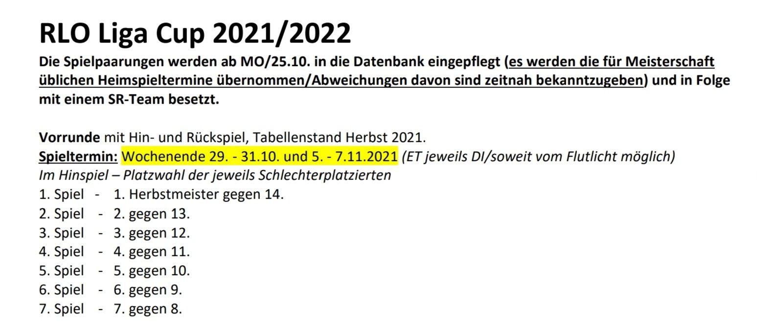ziel des cups war es allerdings, die vereine für die zwei ausgefallenen heimspiele und somit verlorenen spieltagsbezogenen einnahmen zu entschädigen, die durch den murks in nöfv und bfv entstanden sind. aus deren bereich gab es (infolge der verbandsentscheidungen zum abbruch aller bewerbspiele und der unfähigkeit, aufsteiger zu bestimmen) keine nachrücker in die rlo und da auch aus der 2. liga niemand das feld auffüllte, wird der rlo-bewerb aktuell mit 14 statt 16 vereinen ausgetragen.