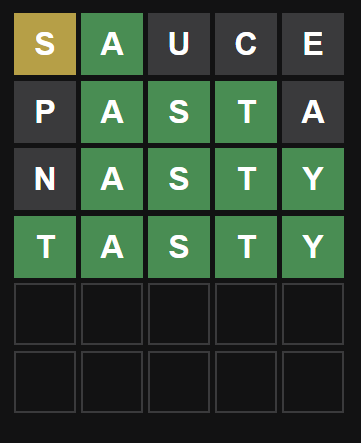 indestructable najo Geschrieben 2. Februar 2023 Spoiler Wordle 593 5/6 🔥160 ⬛🟨⬛🟨🟨 🟩🟩⬛🟩🟩 🟩🟩⬛🟩🟩 🟩🟩⬛🟩🟩 🟩🟩🟩🟩🟩 wordle.at regal laden laken lasen laben 2 Zitieren Diesen Beitrag teilen Link zum Beitrag Auf anderen Seiten teilen More sharing options...