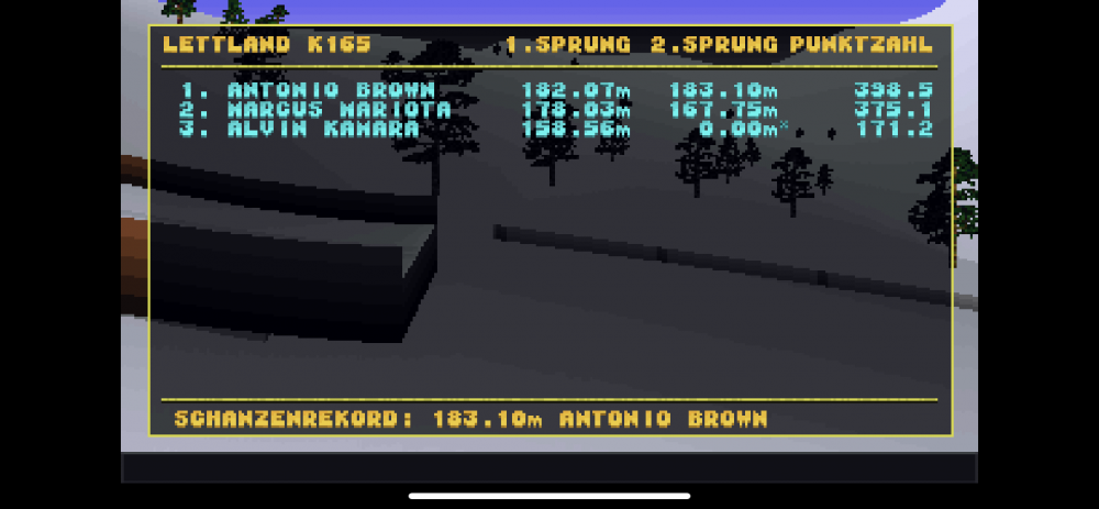 puschidutz1 Bunter Hund im ASB Geschrieben 30. März 2022 danninho27 schrieb vor 8 Stunden: USA K130 1.Sprung 2.Sprung Punkte Tagespunkte 1. Bane 157,70 162,62 346,8 23 2. Jorly (PC) 160,00 158,00 340,3 22 3. Zwara 159,04 157,11 339,8 21 4. Agogo 155,35 160,18 336,0 20 5. blue-white 157,92 156,36 332,8 19 5. Santuzzo 155,26 158,34 331,4 18 7. Derni 157,86 154,60 329,1 17 8. harry1312 147,77 162,91 326,5 17 9. Dumi 160,34 149,87 323,1 15 9. Simsala 153,54 151,71 319,0 14 11. loewinger 150,69 154,25 315,1 13 12. lunatic_gecko 146,11 157,48 314,4 12 13. indestructable 150,93 153,20 313,3 11 13. parazitu 144,73 156,43 305,4 10 15. danninho27 158,17 141,84 305,1 9 15. psywalker 149,48 148,68 301,5 8 17. Doena 150,43 137,97 286,0 7 18. tirnweth 144,25 144,15 284,4 6 19. falcomitdemkoks 150,78 133,16 279,3 5 20. Kaffee 145,17 137,65 277,0 4 21. Diamondback 134,38 136,47 255,0 3 21. Hutz 140,00 130,87 254,4 2 23. aurinko 135,72 121,42 226,2 1 Gesamtweltcup 1. Agogo 132 2. Zwara 119 3. Bane 116 4. blue-white 115 5. Derni 98 6. lunatic_gecko 90 7. danninho27 84 8. puschidutz1 76 9. Dumi 75 10. Jorly (PC) 65 11. parazitu 64 12. indestructable 63 13. psywalker 62 14. harry1312 58 15. Diamondback 53 15. Doena 53 17. falcomitdemkoks 51 18. Santuzzo 50 19. Kaffee 44 20. LiamG 38 21. loewinger 32 21. tirnweth 32 23. berninat0r 29 24. fcw_1913 19 25. Hutz 18 26. Simsala 14 27. Indurus 11 28. aurinko 6 Scheisse habe vergessen den Screenshot von gestern hochzuladen Wär es noch möglich das Ergebnis nachträglich einzutragen? Gemacht gestern um 12:54 0 Zitieren Diesen Beitrag teilen Link zum Beitrag Auf anderen Seiten teilen More sharing options...